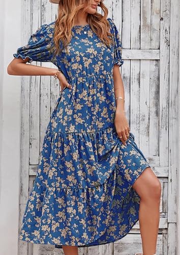 SIZE TIPS: S=US 4-6, M=US 8-10,L=US 12-14,XL=US 16-18 Summer Floral Print Dress Is A Woman's Romantic Dream, In Such A Nice Weather, You Should Wear It, The Printing Is Retro And Magnificent, And The Color Is Gorgeous And Elegant, Looks Very Lovely And Beautiful, Soft, Comfortable And Airy For Hot Summer And Humid Days, Just Trust Me, When You Wear This Dress You Will Attracting More Attention Material: Floral Print Midi Dress Is Made Of Very Soft Polyester/ Spandex Blend Fabric, The Fabric Is A Little Thicker Than Other Summer Wear. The Material Is Not Silk But Is Quality Fabric. Super Light Weight And Breathable, Stretches But Maintains Shape, Not See Through, Perfect For Summer And Other Seasons Features: Women’s Summer Dress, Floral Print, Bohemian Style, Midi Length, Vintage, Cute Puff Short Sleeve, Flowy Swing Hem, Crew Neck, Loose Fit, Vintage And Elegant Look, Ruffle Hemline, High Waist Perfectly Shows Your Good Body Figure, Polka Dot Printed, Flare A-Line Mini Dresses, Your Best Choice For Hot Summer Highlight: Bohemian Floral Print Dress Is Always Stylish And Classic, The High-Waisted A-Line Version Can Better Show Your Perfect Figure, The Round Neck Design Shows Your Slim Neckline, Retro Puff Sleeves French Style, Different Dresses Make You Feel Different Ways, This One Made You Feel Really Cute, Sweet, Playful Occasion: This Dress Can Satisfy You Dating With Your Boyfriend, Take Perfect Photos While On Vacation. When You Walk Along The Beach With Sunglasses And A Fashionable Hat, You Are The Most Attractive Beauty On This Place. This Dress Is Also Suitable For Daily Work Commuting