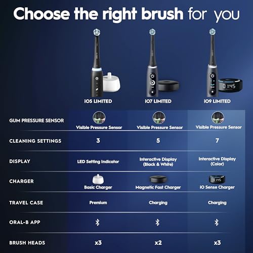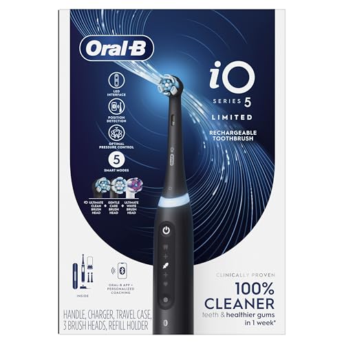 Oral-B Rechargeable Electric Toothbrush, iO5 Limited Deep Clean & Whiten, 5 Cleaning Modes, Visual Pressure Sensor to Protect Gums, Travel Case, 3 Brush Heads, Black