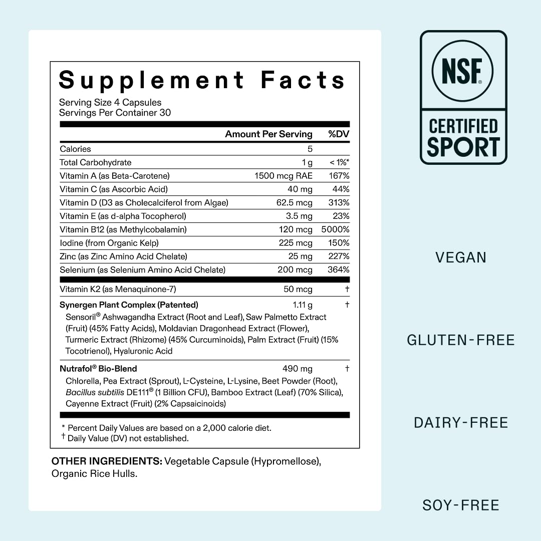 Nutrafol Women's Hair Growth Supplements, for Women 18-44 Years Old, Clinically Tested for Visibly Thicker, Stronger Hair, 100% Vegan Ingredients, Dermatologist Recommended - 1 Month Supply, 1 Pou