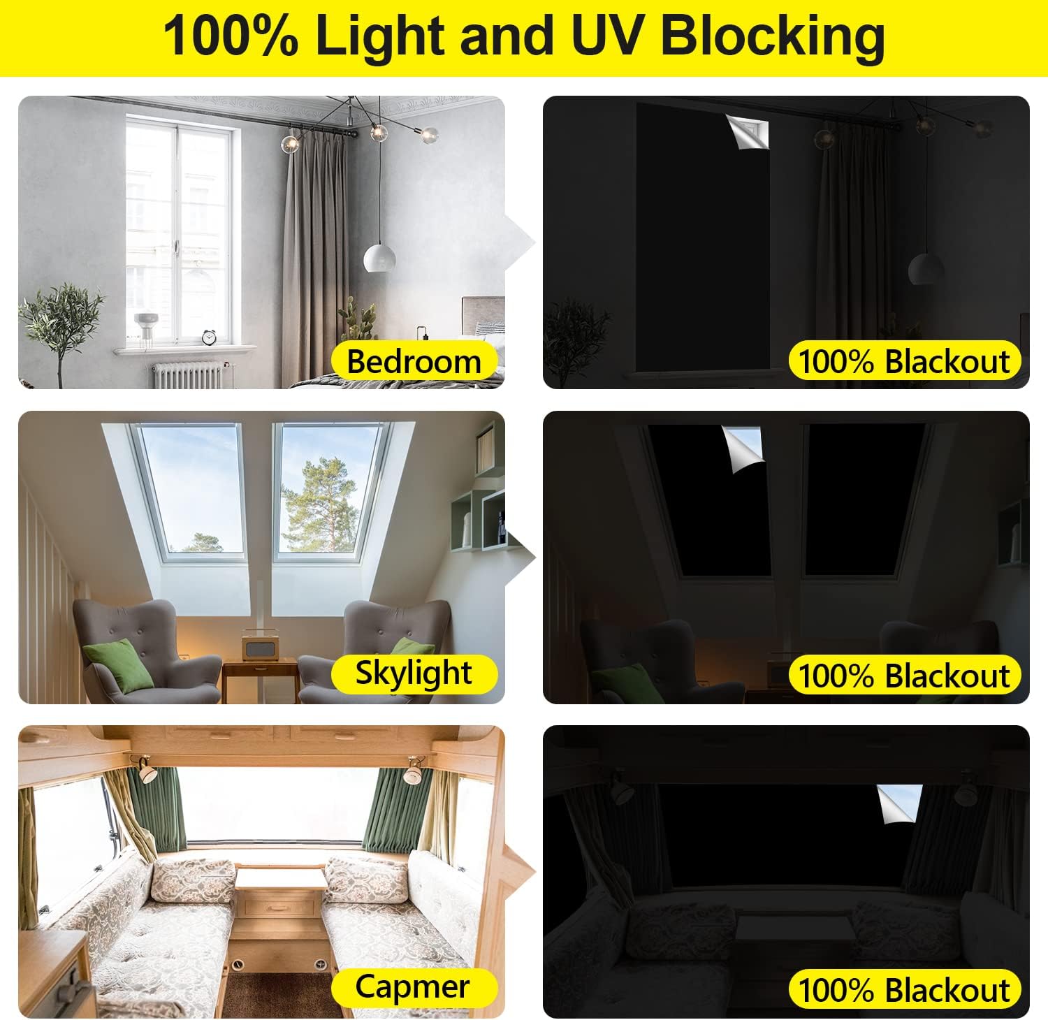 FADOTY Blackout Curtains for Bedroom, Portable 100% Black Out Window Cover Film, Cuttable Blackout Shades Fabric Sheet, No Drill Window Blinds, Sun Heat Light Blocker for Travel Media Dorm, 57'&#3