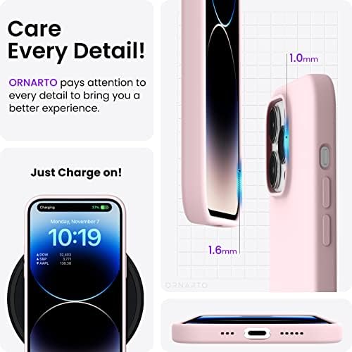 Liquid Silicone Case for iPhone 14 Pro: Only for iPhone 14 Pro (6.1 inches, 2022) — please check your model. To confirm, go to Settings > General > About and look under "Model Name." Crafted from premium liquid silicone, it provides excellent anti-dust protection with dual-layer strength and a soft microfiber lining for corner safety. SGS drop-tested and RoHS/GRS certified. Note: Not compatible with MagSafe, supports wireless charging. Raised Bevel Camera Design: Our special raised bevel camera design for iPhone 14 Pro case offers extra protection for the lens without interfering with the wide-angle camera and flashlight usage. Elegant and Stylish: The premium silicone case for iPhone 14 Pro stands out and bestows confidence and aesthetic taste to its master. It always keeps dry and clean as it is very easy to wipe off dust and dirt on the protective 14 Pro phone case. Easy to Clean: Any stains on our 14 Pro phone case can be easily wiped off with a damp cloth, which can always keep your phone case for iPhone 14 Pro in clean and excellent condition. Multi-Color Optional: ORNARTO provides you with multiple fashionable colors, match for iPhone 14 Pro with any color, expressing romantic life with fresh macaron colors. Enjoy the peace of mind provided by our 365-day coverage. If you encounter any issues, don't hesitate to reach out to us.