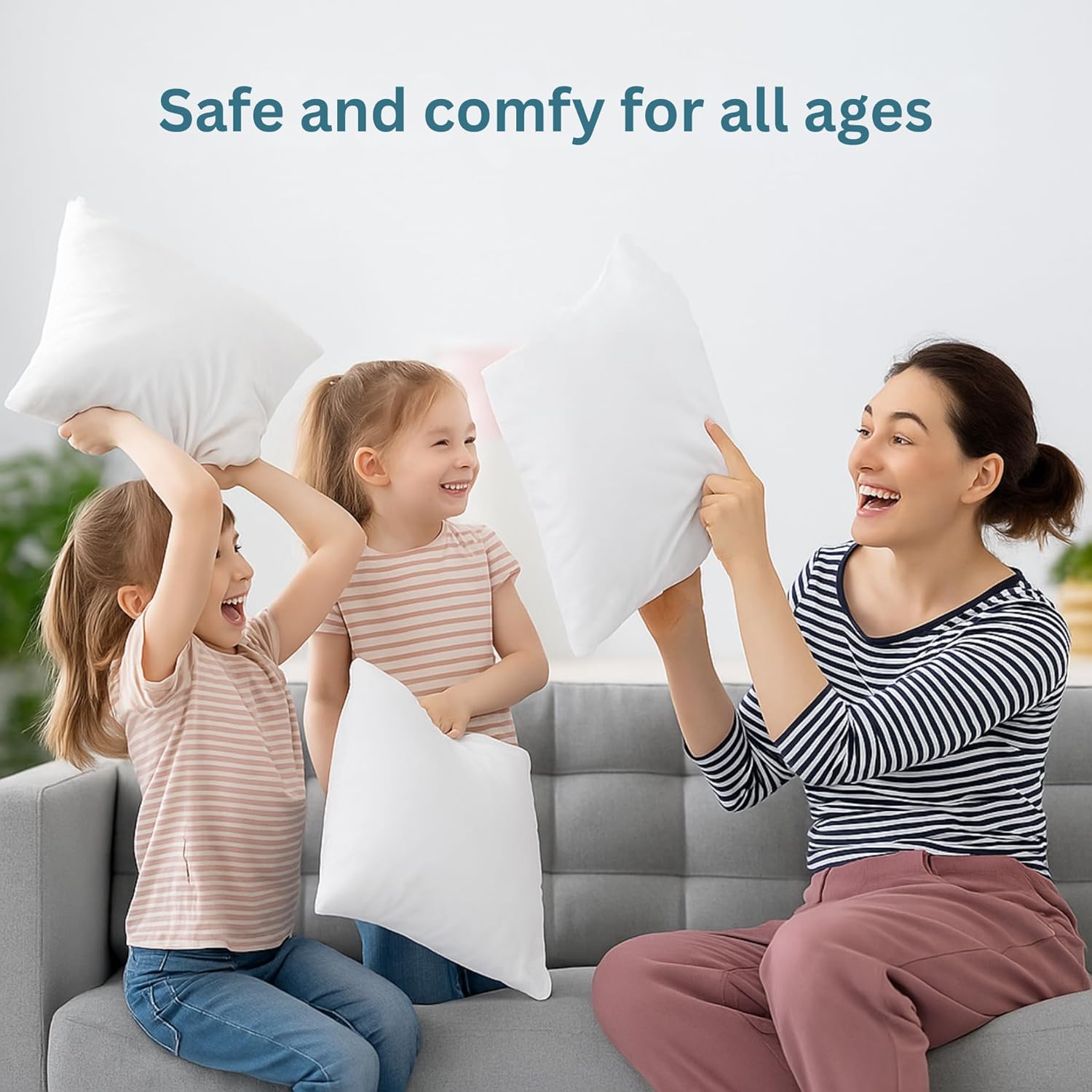 LANE LINEN 4 Pack 18x18 White Throw Pillow Inserts for Decorative Pillow Covers, Couch Pillows for Living Room, Fluffy Pillows for Bed