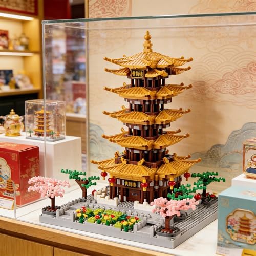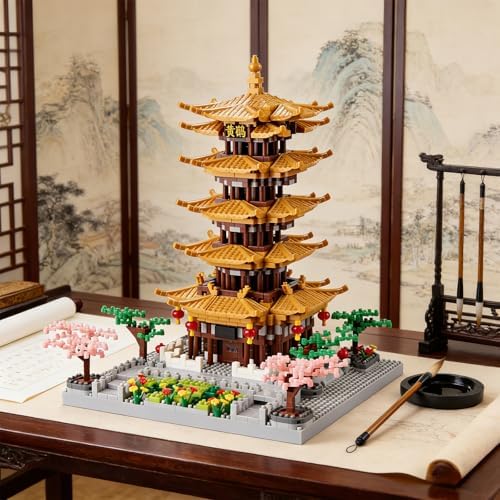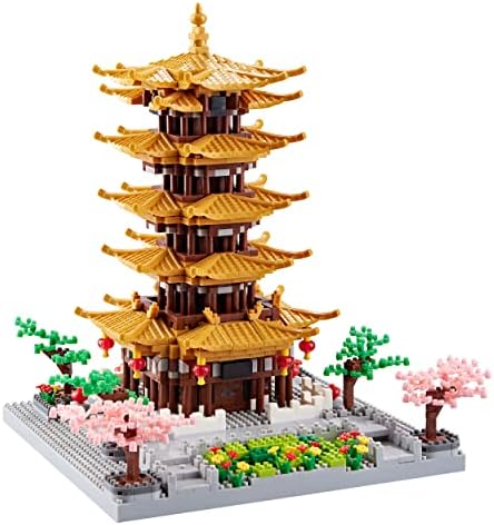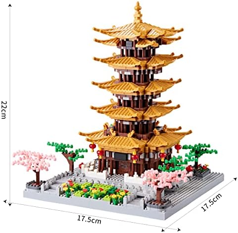 JXRLMB Chinese Ancient Famous Architecture Micro Building Blocks Set for Adults Yellow Crane Tower with Sakura Tree Cherry Plants, Toys for Kids Age of 14+ 2200 pcs