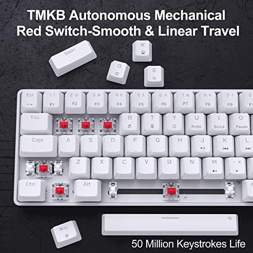Mini Portable 60% Layout Keyboard: T68SE is a 68-key mechanical keyboard, compact size, adding separate arrow keys and "Del" keys, saving space while providing you with all the functions of a normal keyboard Type-C connection also provides more stable transmission. Linear Red Switch: Most quiet mechanical switch that features a linear and smooth, soft, top-to-bottom feedback providing easier and smoother use than other tactile switches. Perfect for people who work in open offices and for gamers who stay up late. Full Anti-Ghosting: T68SE 68 keys gaming keyboard all keys conflict-free, can be triggered at the same time, which makes the game and typing more effective and smooth, also can be easily achieved through the auxiliary key Fn full-size keyboard. Classic Blue LED Backlight:The T68se mechanical keyboard offers a variety of static and dynamic lighting effects with bright and vivid colors. You can switch between 19 built-in lighting modes and adjust the brightness and speed of the lighting using dedicated keys. Compatibility: Suitable for Windows 11/10/8/7/XP, Vista and Linux (Mac OS partially compatible).