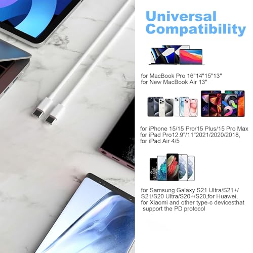 Compatibility List: This cable supports 60W high-speed charging for Type-C smartphone, tablet or laptop for iPhone 17/Air/17Pro/17 Pro Max/16/16E/16 Pro/16 Plus/16 Pro Max/15/15 Pro/15 Plus/15 Pro Max,for MacBook Pro,for iPad Pro 2020 /2019/2018,for Samsung Galaxy S20/S20 Ultra/Note 10/Note 10 Plus,for Chromebook(Note: Charging speeds also depends on your device and charger. Pair your C-Port devices with USB-C Chargers including and various 96w 87w 65w 61w 60w 45w 30w 18w USB-C Power Adapters.) NOTE before purchase: This is a USB-C to USB-C cable, which means it has the same USB C plug on both ends, please be aware that this is not a USB-C to USB-A cable. Besides, you may need a USB C wall charger to charge your device. Supports Power Delivery: Get up to 60W high-speed charging for all of your USB-C devices when paired with a USB-C charger. Built to Last: A hard-wearing exterior and a bulletproof fiber core combine to create a cable that can withstand up to 12,000 bends. What You Get: 2 × New USB-C to USB-C Cable our friendly customer service.
