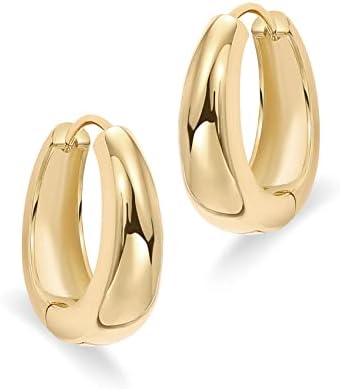 HIGHLIGHTS: These cute chunky hoops are lightweight and perfect for everyday wear! Crafted with 925 sterling silver posts, these hoops for women measure 19mm in diameter, 7mm in thickness, and 22.5mm in length. PREMIUM QUALITY: Crafted with 14K yellow gold plating, these hoop earrings for women are 100% hypoallergenic and safe for sensitive skin. Each earring is nickel-safe, lead-safe, and cadmium-compliant, crafted to meet strict U.S. and EU standards for lasting comfort and everyday wear, whether you’re at work, out with friends, or celebrating special moments. PERFECT GIFT FOR HER: These stunning hoop earrings come in an elegant premium box that's ready to be gifted, making it an unforgettable present to surprise mom, wife, daughter, girlfriend, or best friend. These gold earrings for women are ideal for Valentine's Day, Mother's Day, Christmas, birthdays, anniversaries, or "just because" moments. OUR SATISFACTION PROMISE: Your happiness is our number one priority. If you’re not loving your product, let us know within 60 days so we can make it right! To get in touch, email or chat with us - a member of our team will be happy to help. We’re a proud American-owned business, committed to delivering top-quality products and exceptional customer service. SUSTAINABILITY: PAVOI is dedicated to sustainability throughout our entire product cycle. Our jewelry is made from 100% recycled materials and we package in 99% recycled materials. We work to reduce our carbon emissions and offset plastic consumption by removing 275,000 bottles from oceans annually. We are committed to maintaining a business that minimizes our environmental impact.