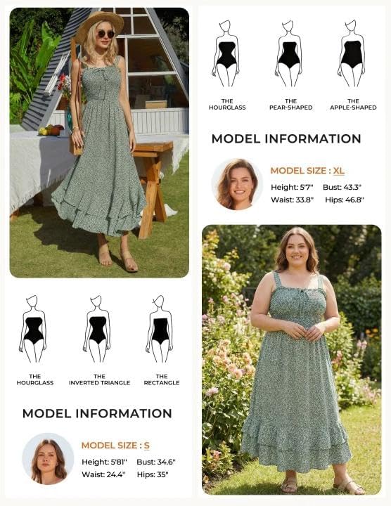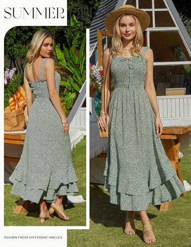 Features: Flattering strappy maxi dress features a vivid floral print, elastic smocked design, open back, Adjustable Buttons Straps and lovely tiered ruffles. Meet your fantasies and expectations of summer Occasions: The boho summer sun dress is great for beach, party, vacation, holiday, family gathering, wedding, date, streetwear, photography. Elegant A-Line dresses for women are suitable for all the seasons Match: This spring vacation dress for women is an effortless and versatile maxi dress, match with necklace, earrings, sunglasses, sunhats, clutches, heels, and wedges for a charming look Material: The maxi dress for women beach vacation is made from 98% polyester+2% viscose, comfortable easy everyday outfits for spring, summer Size Guide: Please refer to Amazon size chart and Skirt Length Reference Chart we provided in the pictures before buying this flowy long dresses. Hand wash or put into a laundry bag for gentle machine wash