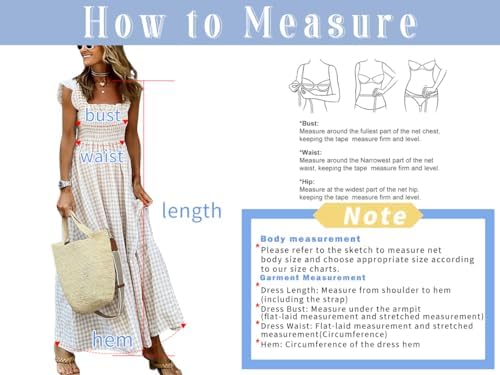 Please check the "Size Chart" before ordering. Our size chart consists of two parts: the Body size and the Garment size. You can refer both size charts to pick appropriate size. If you have any size-related questions, feel free to contact us! Fashion smocked plaid dress women with pockets, featuring cute spaghetti trap with sweet ruffles, shirred smock bust, a-line silhouette, flattering plaid dress for women to hide tummy. Trendy plaid printed pattern. Elegant square neck. Sleeveless. Flowy flounce hem. Below the knee length. 2 side handy pockets. 4 color: khaki/sky blue/black/red. Also can wear as off the shoulder dress. Elegant plaid long dress, plaid smocked dress, basic and simple checked pattern, color block retro visual vibe, put on it to be a beautiful princess! Suitable for daily life, office work, school, street, dating, evening party, night club, going out, beach, cocktail, weddings, vacation, holidays and so on.
