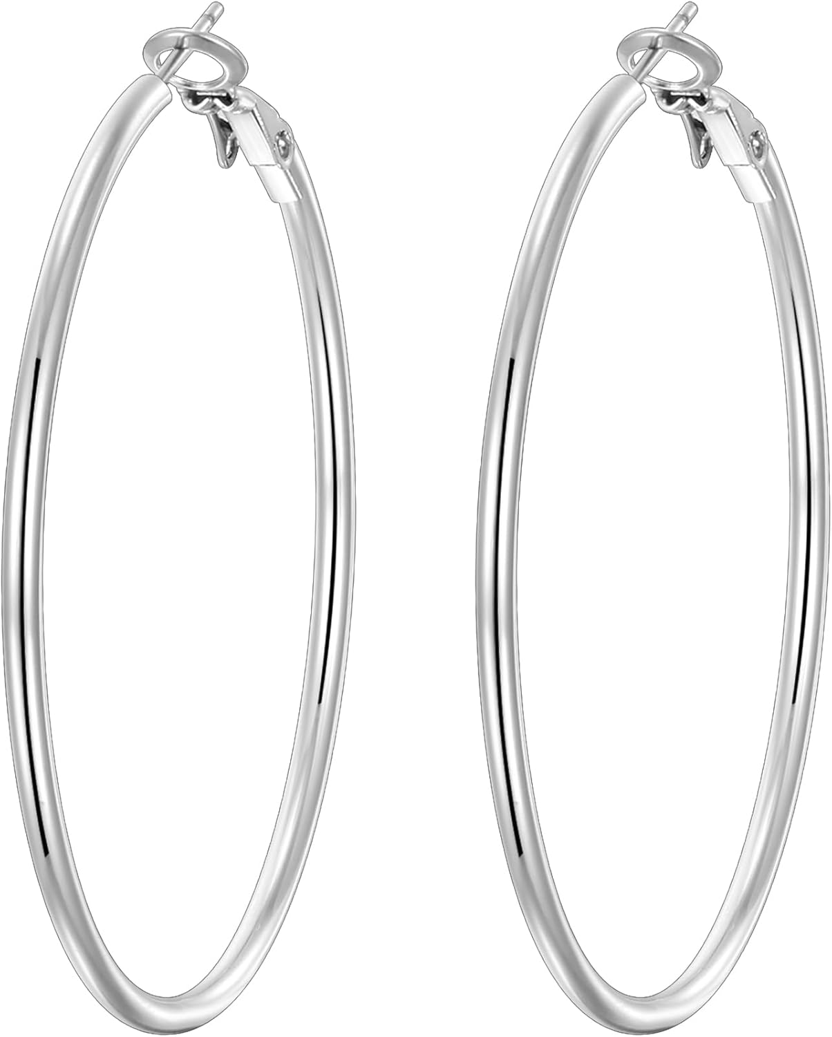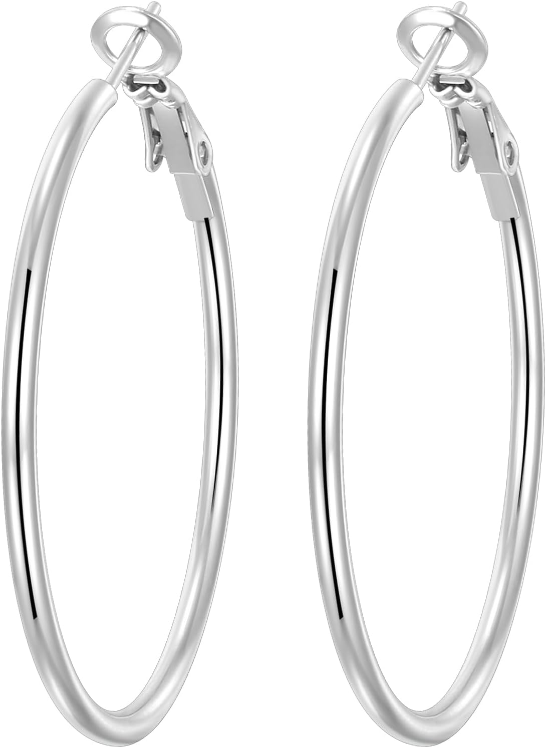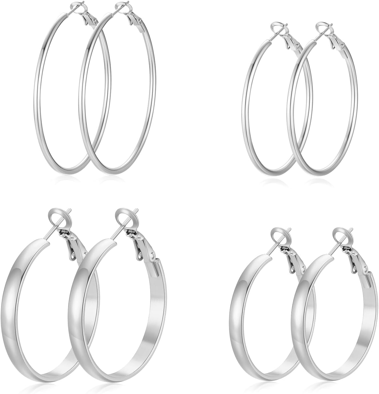 4 Pairs Silver Gold Hoop Earrings for Women | 14K Gold Plated Hoop Earrings Set Hypoallergenic Earring Lightweight Dangle Earrings Set