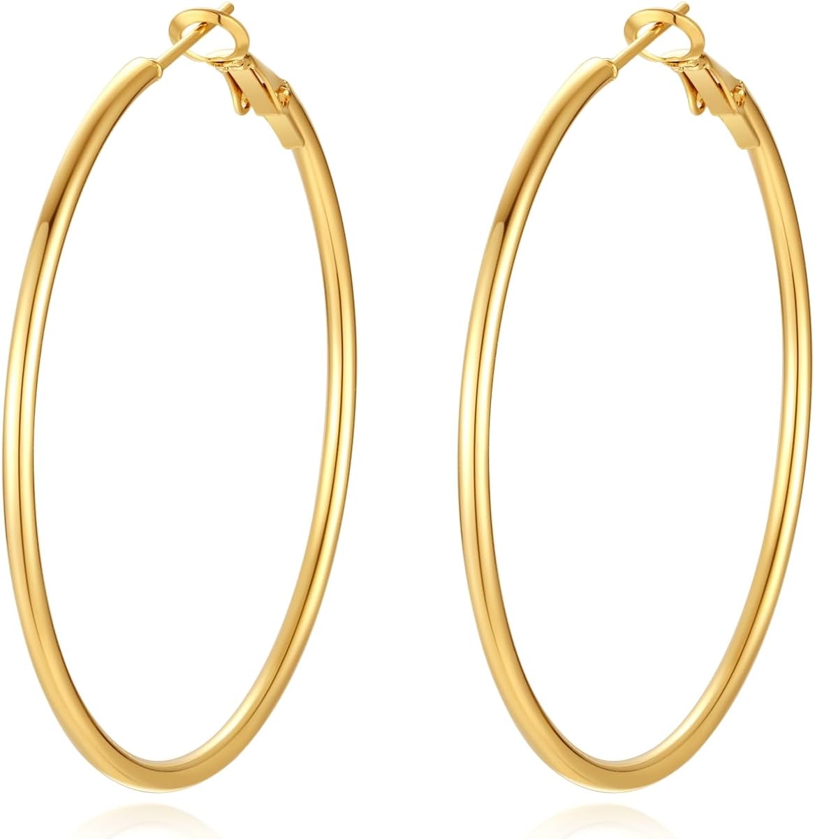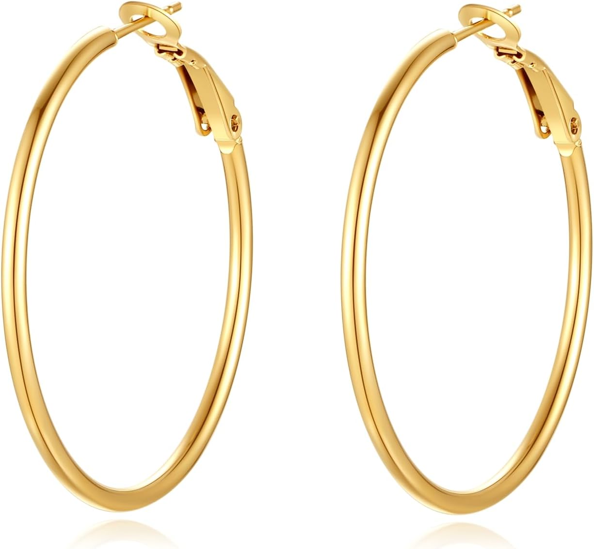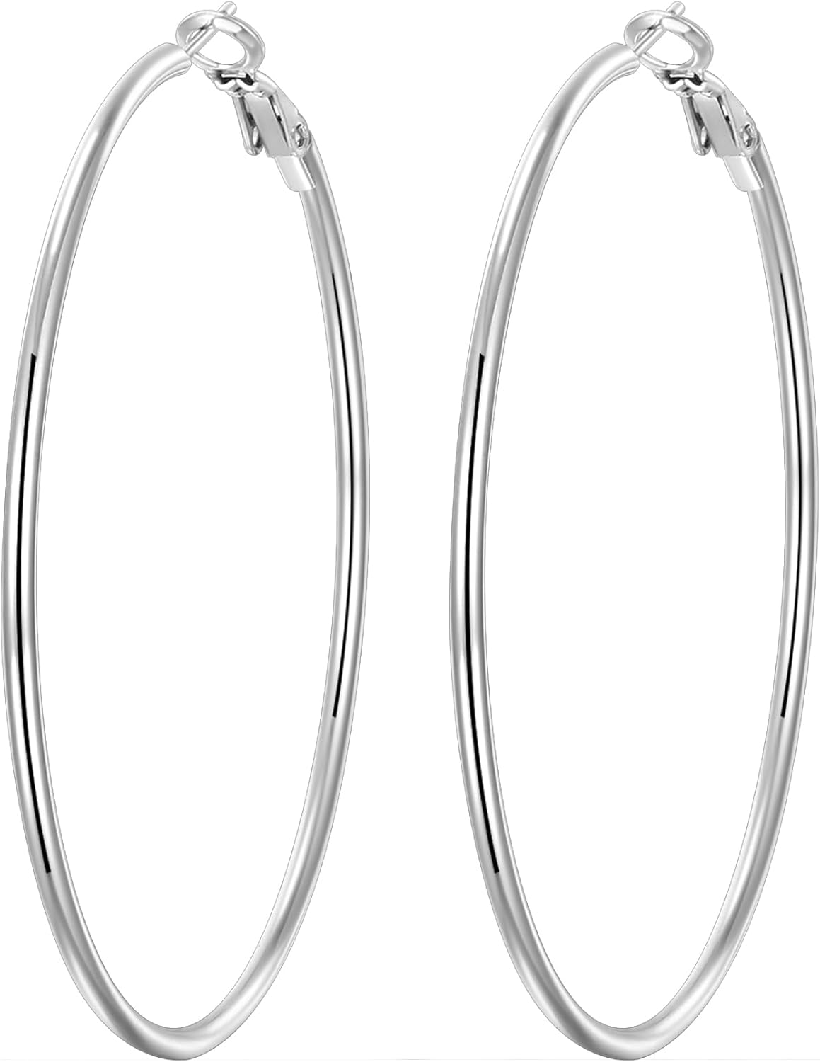 4 Pairs Silver Gold Hoop Earrings for Women | 14K Gold Plated Hoop Earrings Set Hypoallergenic Earring Lightweight Dangle Earrings Set