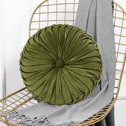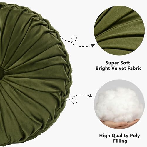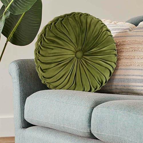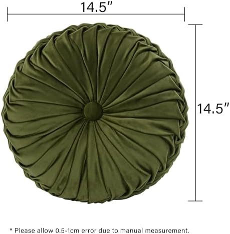 EXQUISITE HANDCRAFTED PLEATED DESIGN: This decorative round pillow with unique pumpkin shape is soft to the touch and has extra style with it’s pleated detailing. The intricately pleated design is sewed by hand, not by machine, which is more delicate and high-end. The elegant button in the middle ties together the complete look. SUPPORT FOR CHARITY: All the round throw pillows are made in local charitable organization, which most of the workers are disabled, elderly grandparents who taking care of the left-behind children and low-incomes. Your love and support can make their life better. So they don't need to leave hometown and can spend more time with the families. VERSATILE USAGE SCENARIOS: Super soft pillows can be used to lean your back and head anytime and anywhere in your life, whether you are on the bed, on the sofa, in the office chair, or on the outdoor, it can give you good support and bring a stylish touch to your home. It can also be used on meditation, floor, car, window, garden decor and etc. TIPS: Since the pillows are packaged in a Vacuum Bag, it is normal for the product to have some wrinkles, which is definitely not a quality problem. Please put the cushions exposing under the sunlight for a few hours and lightly tap it to make it fluffy, then the pillows will recover to the normal thickness soon. WHAT YOU CAN GET & CARE INSTRUCTIONS: Available in 2 pieces of brand new 14.5 x 14.5 inches throw pillows. Due to the delicate nature of the design, SPOT CLEAN is highly recommended.