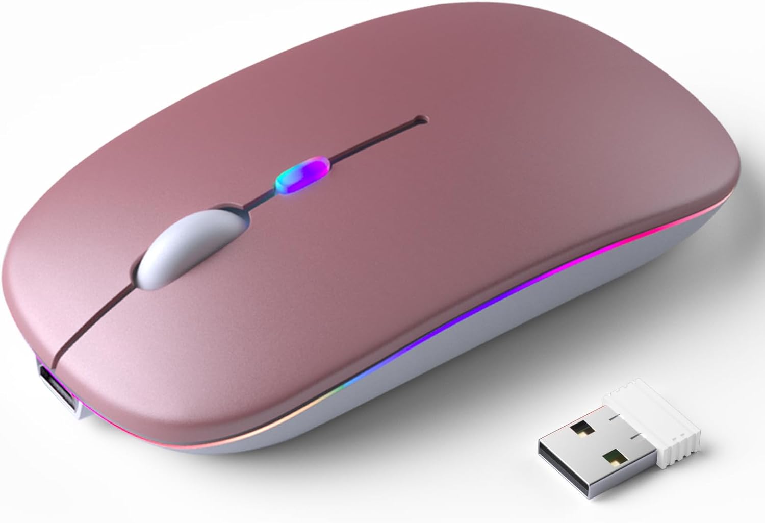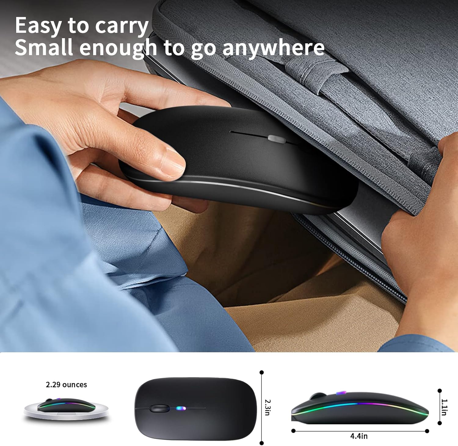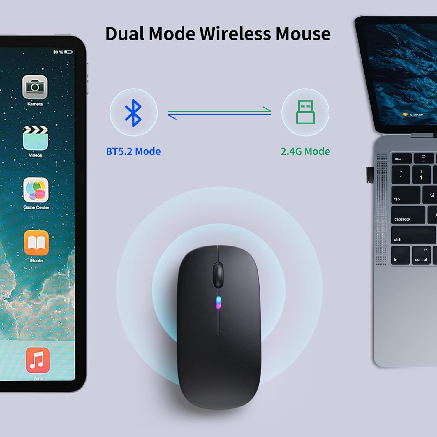 KANMABPC Wireless Bluetooth Mouse \u2013 Rechargeable, Silent, Dual Mode (Bluetooth 5.2 & USB) with LED Lights \u2013 Portable for Laptop, Desktop, & Tablet(Black)