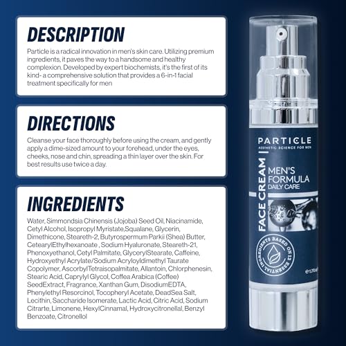 Particle 6-in-1 Face Cream for Men, Men’s Daily Hydrating Moisturizer with Vitamin C, Jojoba Oil, Vitamin E & Hyaluronic Acid, Skin Care Routine, Healthy Skin Support, Pack of 1, 1.7 FL OZ