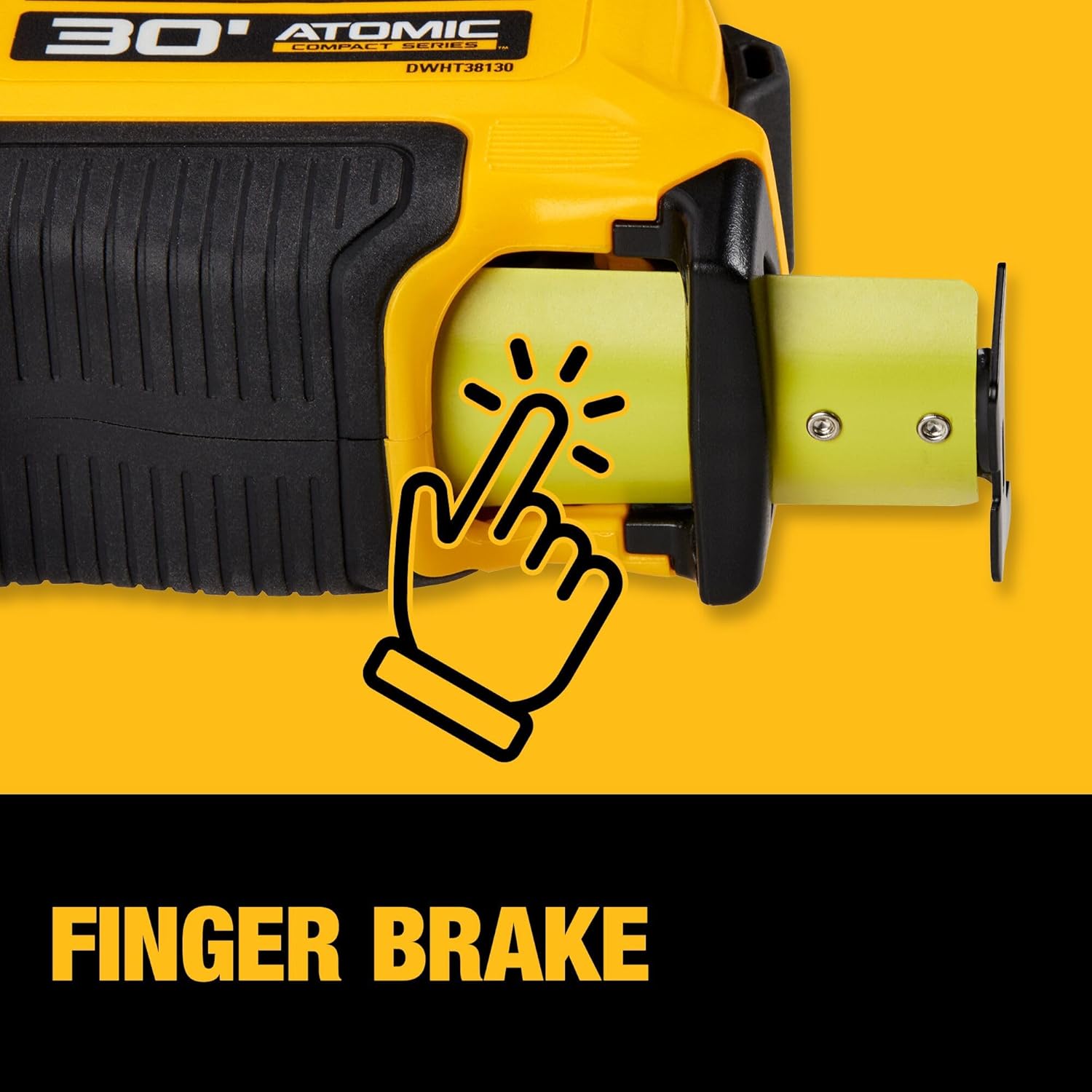 The ATOMIC COMPACT SERIES Tape Measure is Where Size Meets Power. Our new line of ATOMIC COMPACT SERIES Tape Measures delivers on durability and reach, with a compact design that gives you more control when measuring. Our first integrated finger brake gives you better blade control to get the job done quicker and more efficiently. The 13 ft. of max reach* ensures you can get the job done on your own, and the fractional blade graphics help make measurements quick and easy.