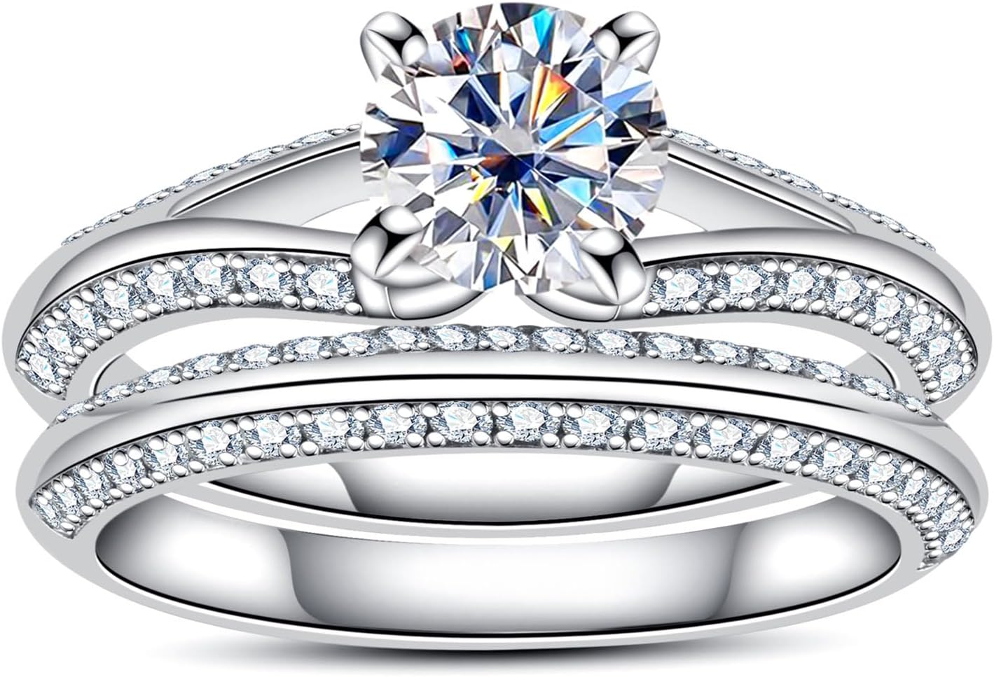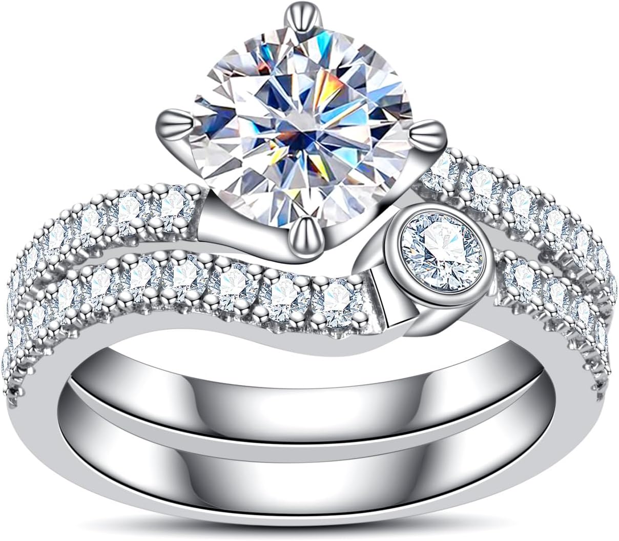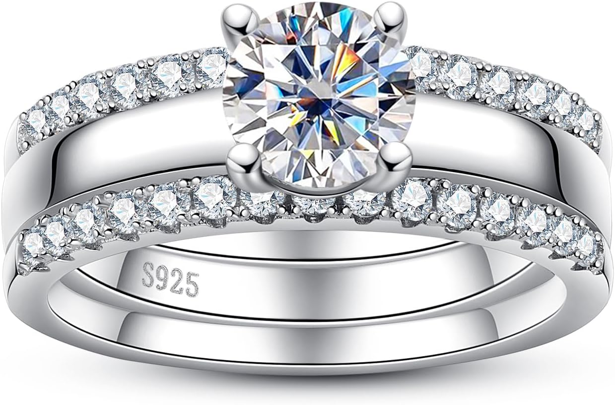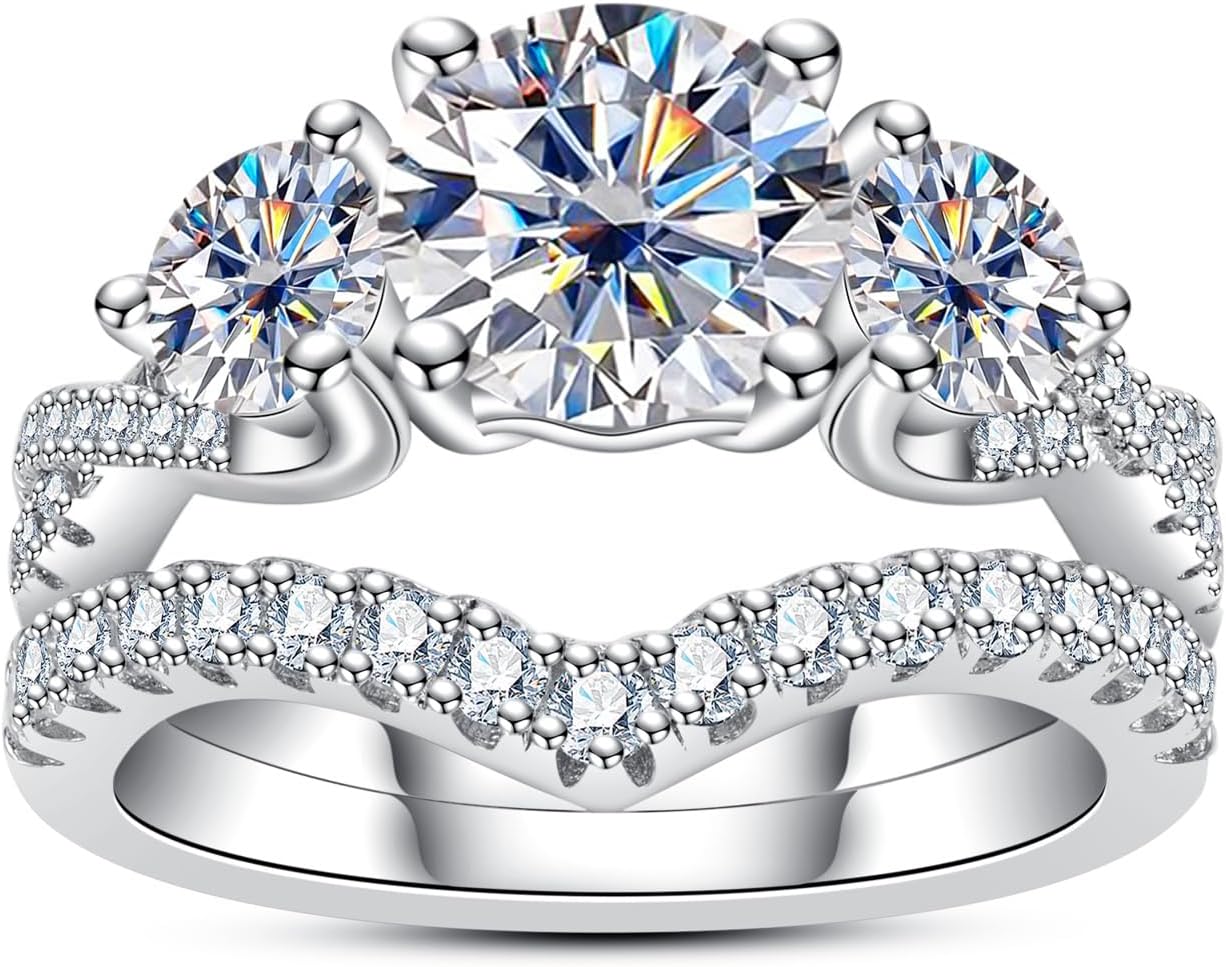 AimiIee Moissanite Wedding Rings Bridal Set 3.7CTTW D Color VVS1 Clarity Round Brilliant Cut 925 Sterling Silver Moissanite Wedding Band Engagement Rings for Women with Certificate
