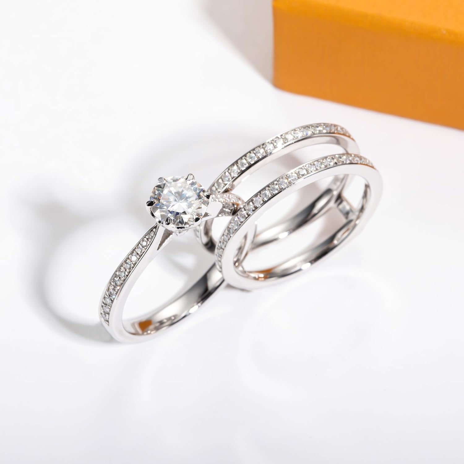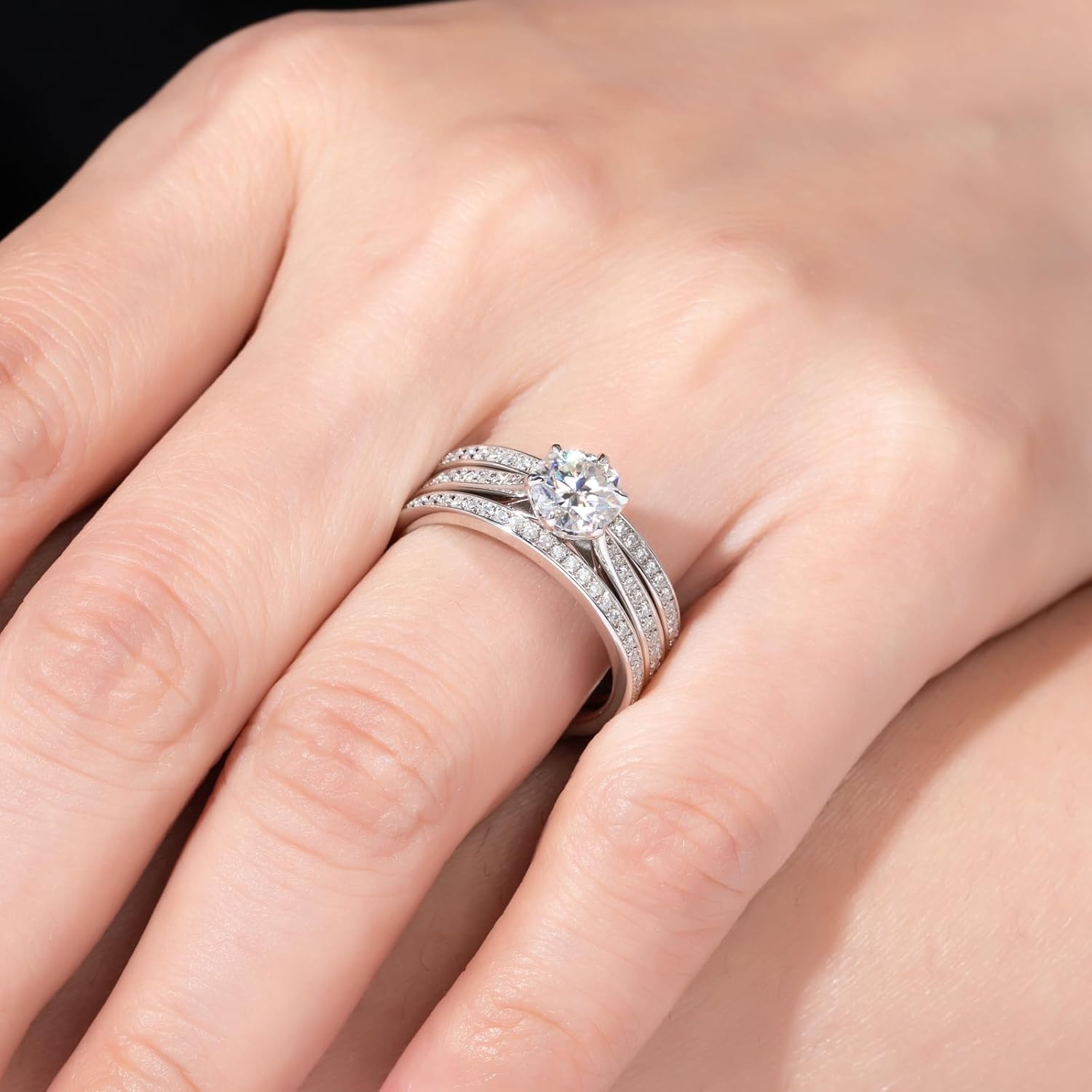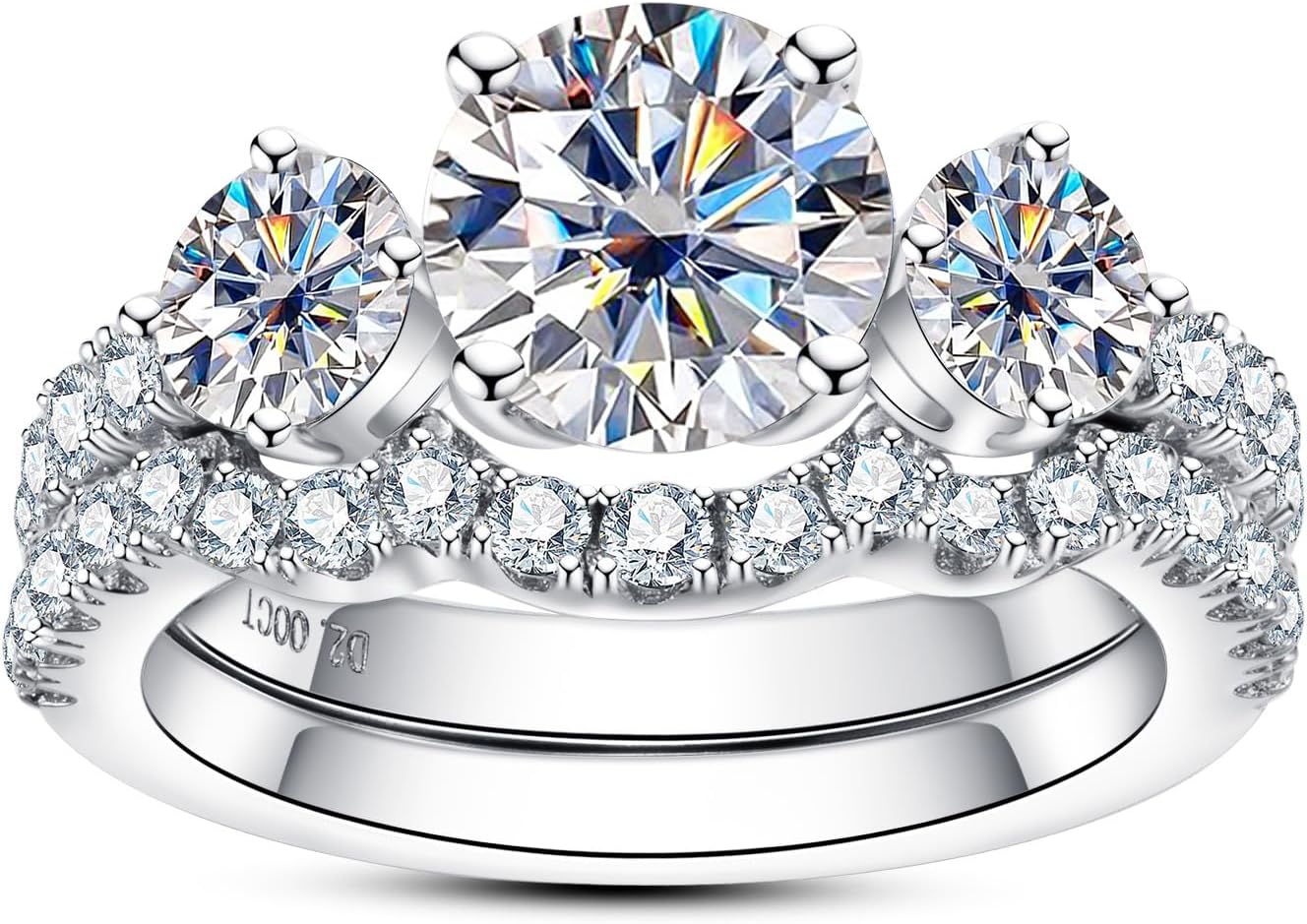AimiIee Moissanite Wedding Rings Bridal Set 3.7CTTW D Color VVS1 Clarity Round Brilliant Cut 925 Sterling Silver Moissanite Wedding Band Engagement Rings for Women with Certificate