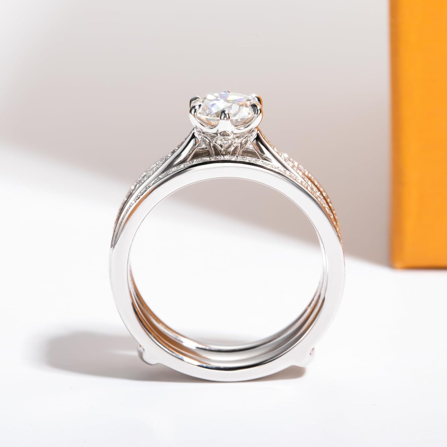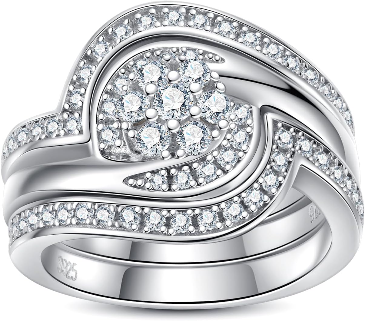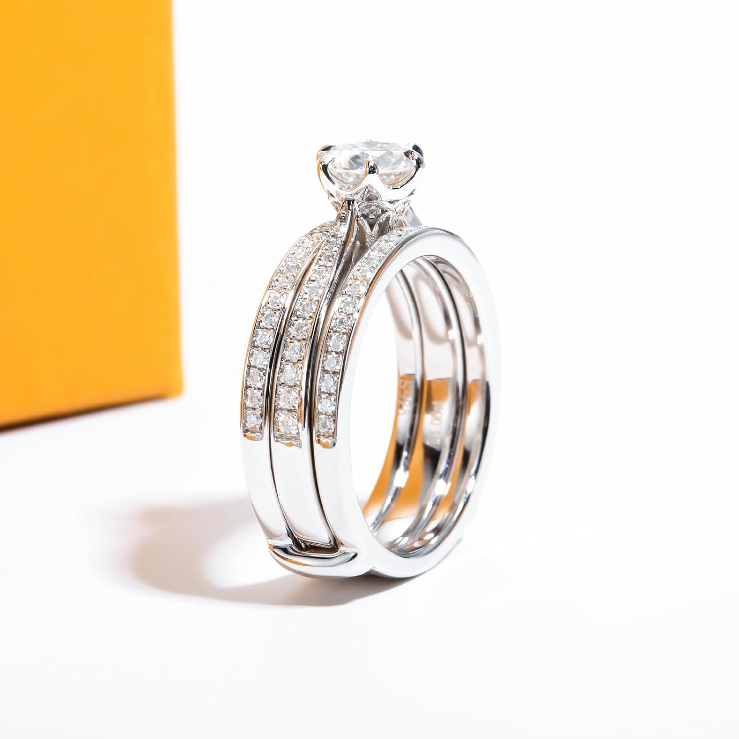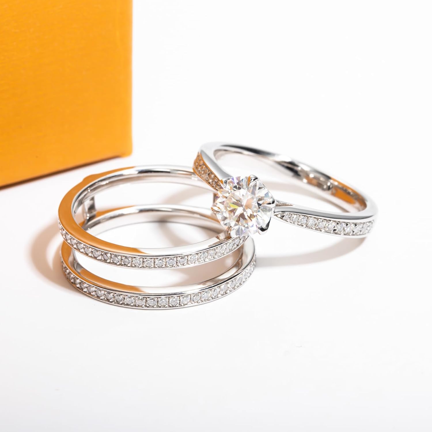 AimiIee Moissanite Wedding Rings Bridal Set 3.7CTTW D Color VVS1 Clarity Round Brilliant Cut 925 Sterling Silver Moissanite Wedding Band Engagement Rings for Women with Certificate