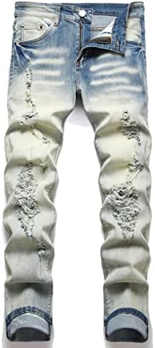 US SIZE.Fashionable Ripped Holes Denim Jeans,Zipper deco Material: Cotton blend.Exquisite workmanship and fine texture,comfortable and durable. Ripped destroyed style with distressing down the front, makes these denim pants feel fresh and attractive. Comfortable to wear - Breathable, soft, stretchy and durable. You can wear in the autumn and winter seasons, these jeans will be your good choice for everyday wear.As a gift, it is also very appropriate. Garment Care - Hand wash recommended. Machine wash cold, turn the jeans inside out and wash separately with like colors. Do not bleach.