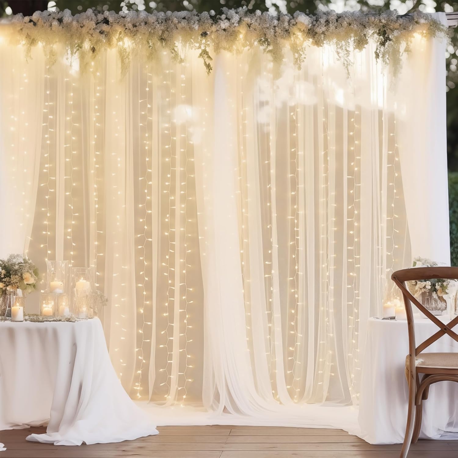 10×10ft White Tulle Backdrop Curtain with Lights String for Parites, Sheer Curtain Backdrop Drapes for Wedding Party Home Decorations
