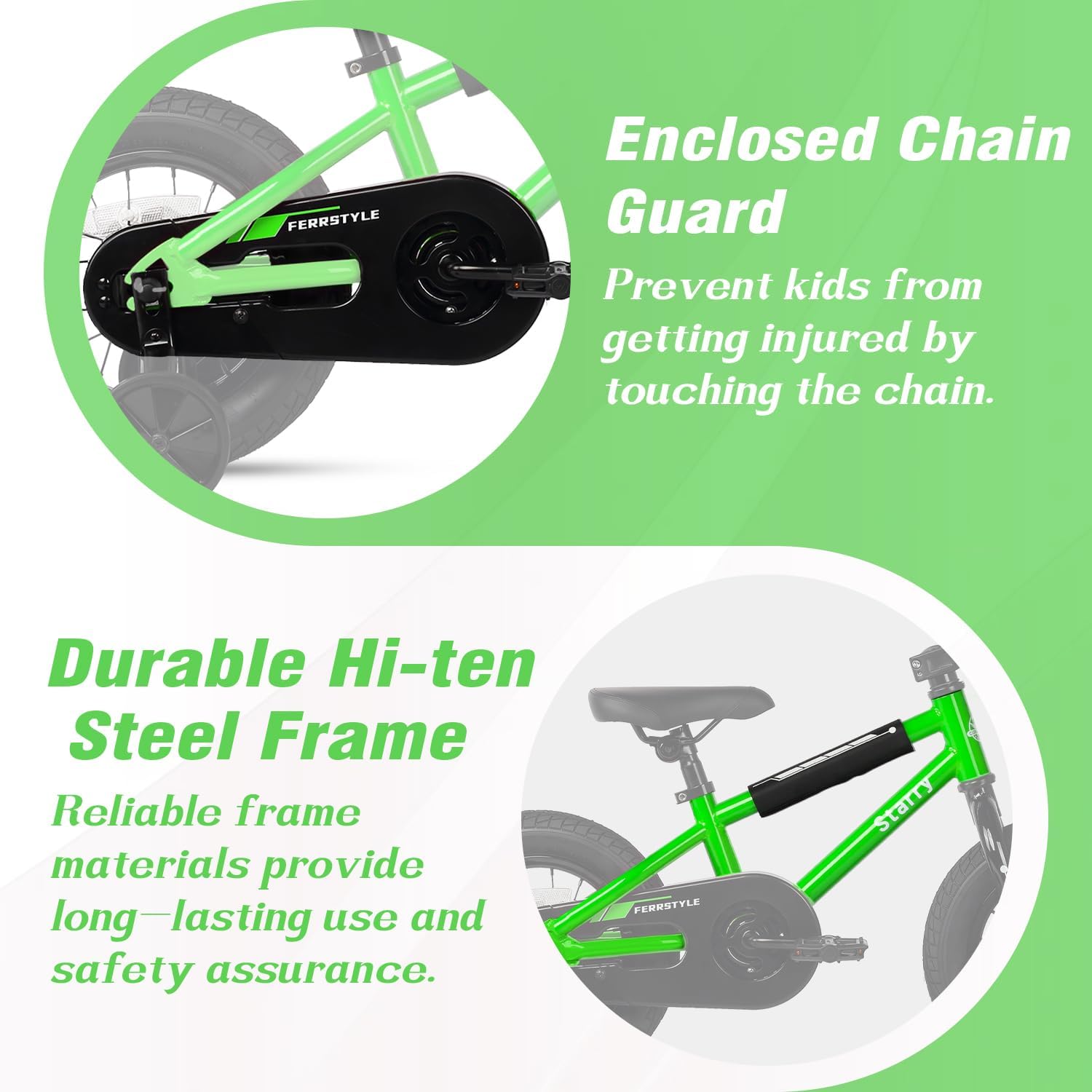 【Child-Safe Braking System】 Features an easy-to-use coaster brake perfect for small hands, a full chain guard for safety, and wide tires for slip-resistant traction.