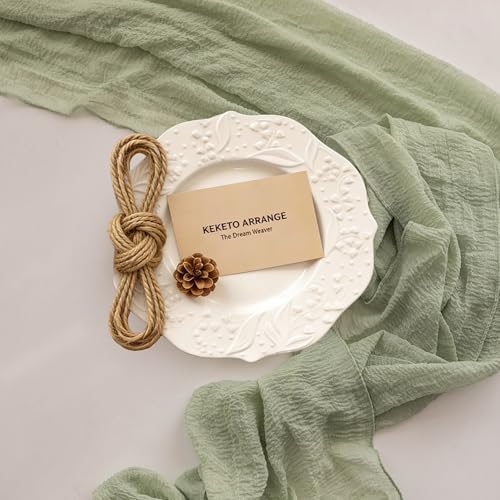 Gauze 【Exceptional Quality】Hand-dyed using cotton fabric, crafted with a special technique to achieve the distinctive characteristics of gauze and cheesecloth. Edges are meticulously stitched to prevent fraying. Premium materials offer a soft, breathable feel and exceptional durability, adding a delightful vintage charm to your dining table. 【Wide Application】Excellent choice for beautifying tables, chairs, and even wedding arches. Perfect for a wide range of occasions: home decorations, Baby Showers, weddings, bridal showers, birthday parties, Valentine's Day, Thanksgiving, Christmas, anniversaries, and boho-themed feasts. The naturally draped hem adds a touch of elegance that perfectly complements your artistic taste. 【Package Includes】1 Table runner (35 x 120 inches) and 1 natural jute rope(40 Inch), all neatly packed in a transparent plastic bag. This versatile runner is designed to fit most table types. 【Care Instructions】For long-lasting reuse, we suggest hand washing the runner in cold water with a mild detergent. If you prefer, you can also machine wash it on the gentle cycle using a laundry bag. Please avoid using bleach or soaking the runner for an extended period. Following these instructions will help maintain its quality and durability.Due to the soft material of this product, you need to be careful of sharp objects to avoid adverse consequences. 【Guarantee】We strive to display the product's true color accurately, but please note slight variations may occur due to screen resolution, photography limitations, and lighting conditions. If you have any questions or concerns, feel free to contact us. We are dedicated to ensuring your shopping experience is seamless and enjoyable.