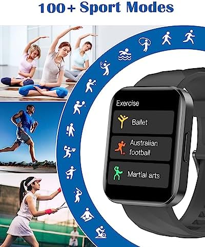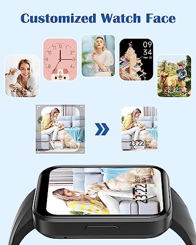 【Large HD Color Screen & IP68 Waterproof】The 1.85-inch high-definition full touch screen and advanced sensors make the operation smoother, providing you with a better visual and user experience. IP68 waterproof standard allows you to enjoy water sports without fear. D1 smartwatch is designed with Bluetooth 5.2, which enable it runs faster and the data transmission is more stable. 【Health Tracker】D1 fitness watch features over 100 sports modes, which can meet the need of most sports enthusiasts. It can automatically track your daily steps, distance, and calories. 24-hour heart rate and blood oxygen monitoring to help you better understand your physical condition. You can also obtain your sleep data to help you analyze your sleep quality and develop a better sleep habit and a healthier lifestyle. 【Wide Compatibility & Personalized Watch Faces】D1 smart watch works as an extension of your phone so you can do more while on the go, bringing more convenience to your life. It works seamlessly with iPhone and Android phones. This smart watch can offer over 100 personalized watch faces to choose from, and you can also customize your watch face with your favorite photos to highlight your unique personality. 【Make/Answer Calls & Smart Notifications】After connecting D1 watch with your phone via Bluetooth, you can easily make and answer calls directly on the watch. When there is an incoming text or social media messages, it will also vibrate to remind you to check out. Never miss anything important even on the go. 【More Useful Functions】You can enjoy more practical features, such as stopwatch, timer, calculator, alarm clocks, voice assistant, music control, female cycle tracking, etc., it can be a smart assistant and an essential companion for a healthy life.