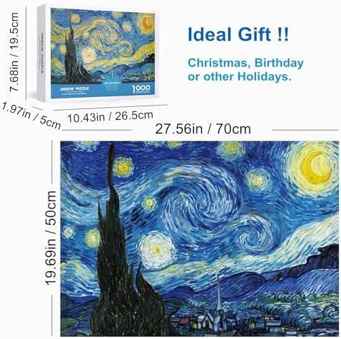 Jigsaw Puzzles for Adults 1000 Piece Starry Night by Vincent Van Gogh 27.56 x 19.69 Inch Puzzles for Adults Educational Challenge Toy Van Gogh Puzzles 1000 Pieces for Adult