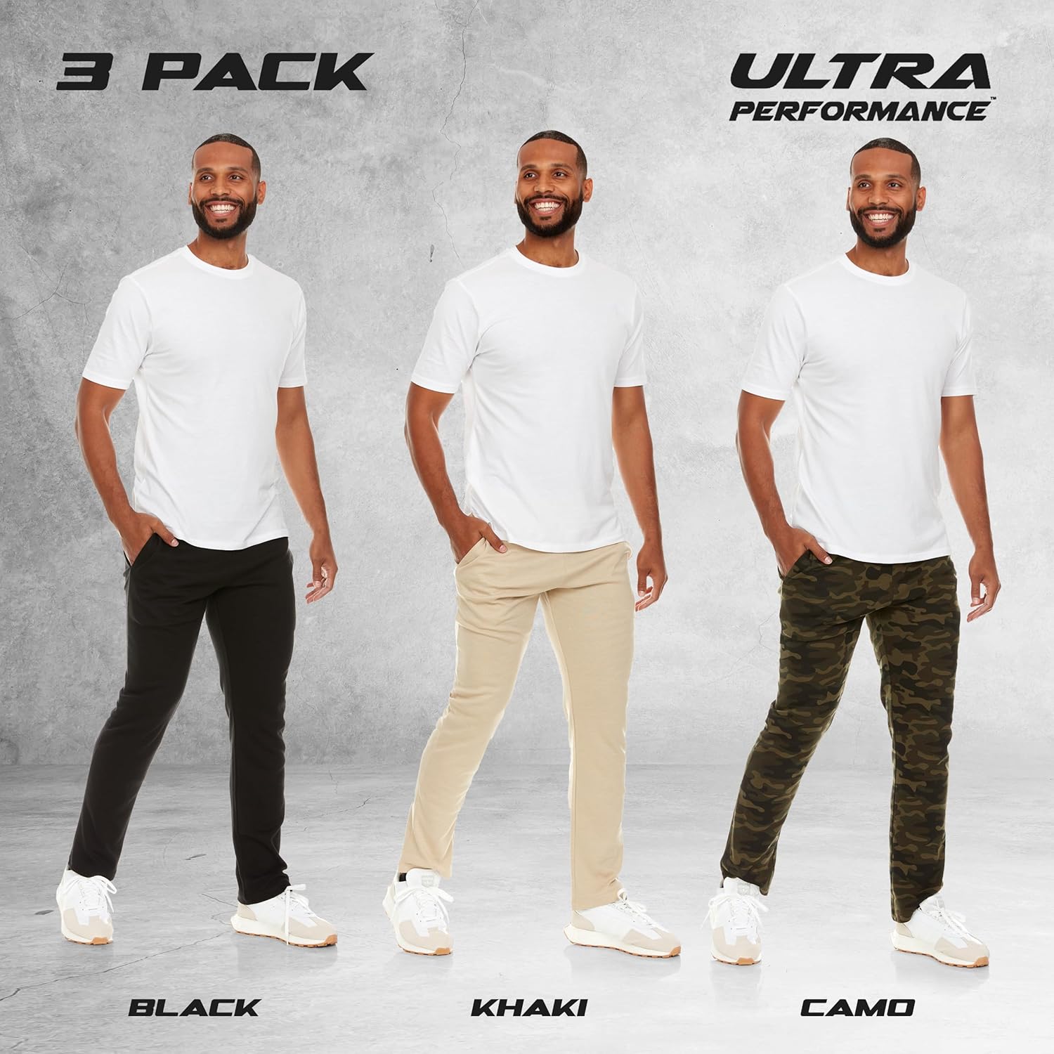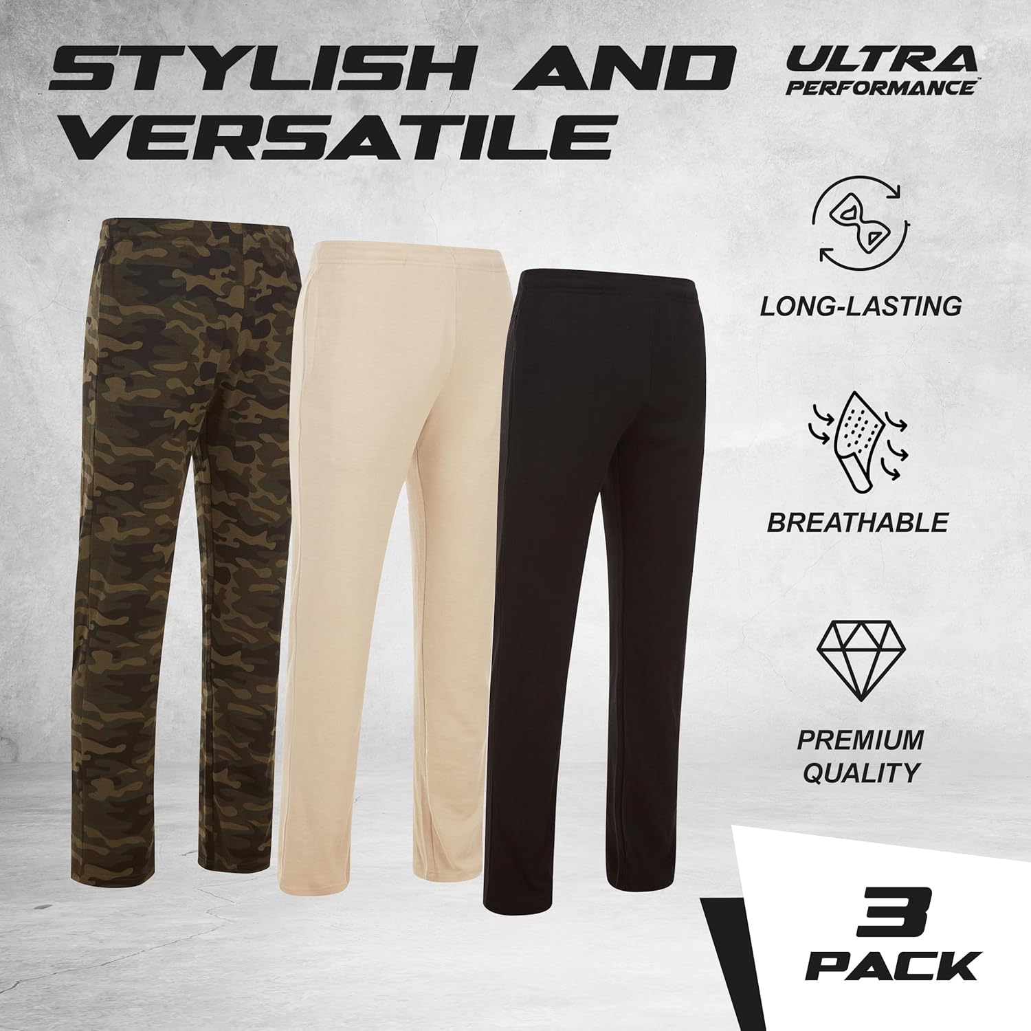 Ultra Performance 3 Pack Mens Sweatpants, Wide Leg Open Bottom Lounge Sweat Pants for Men