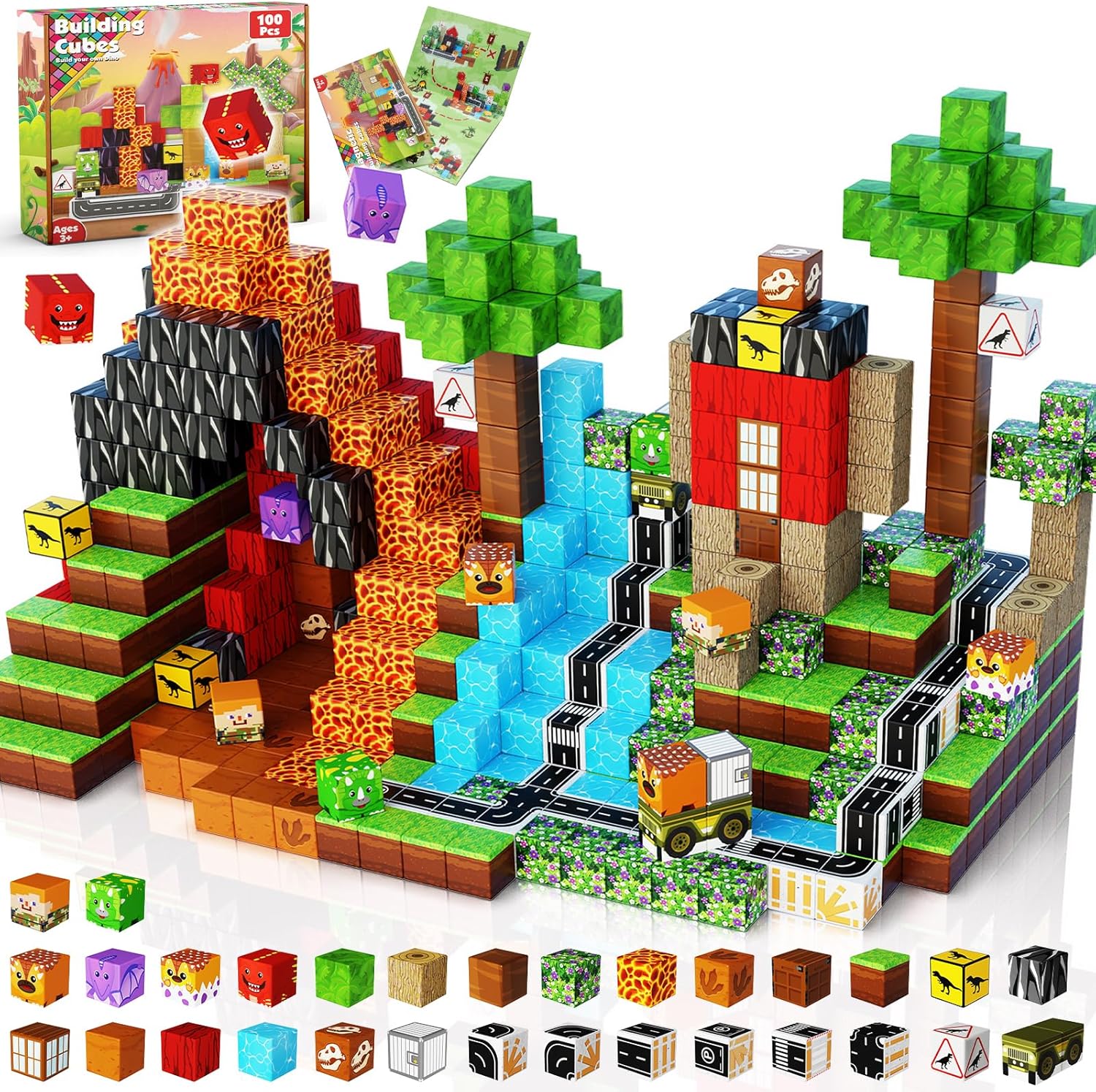 Goody King Magnetic Blocks |100PCS Magnetic Building Cube Game, Constructions Toys for Boys & Girls Age 3-4, 5 6 7 8 9 10, STEM Montessori Stacking Toy, Sensory Tiles Building Birthday for Toddler