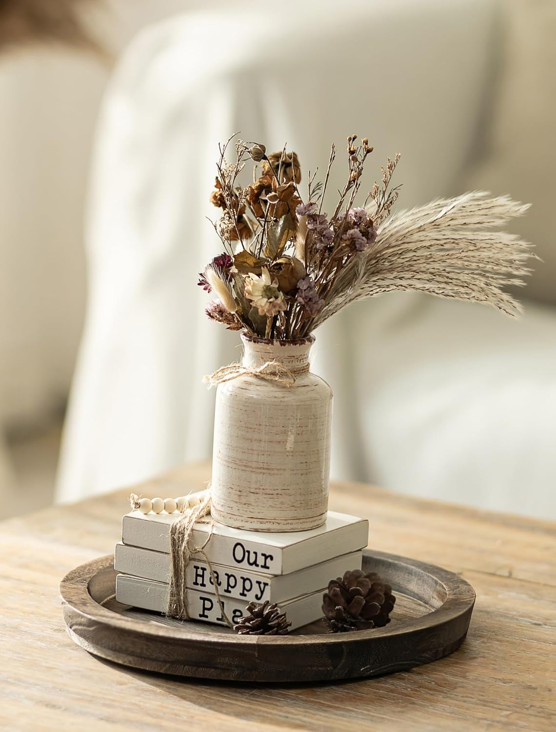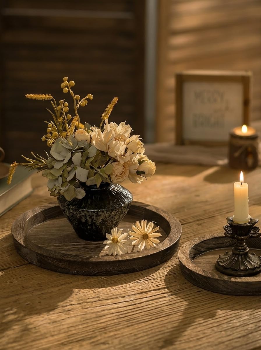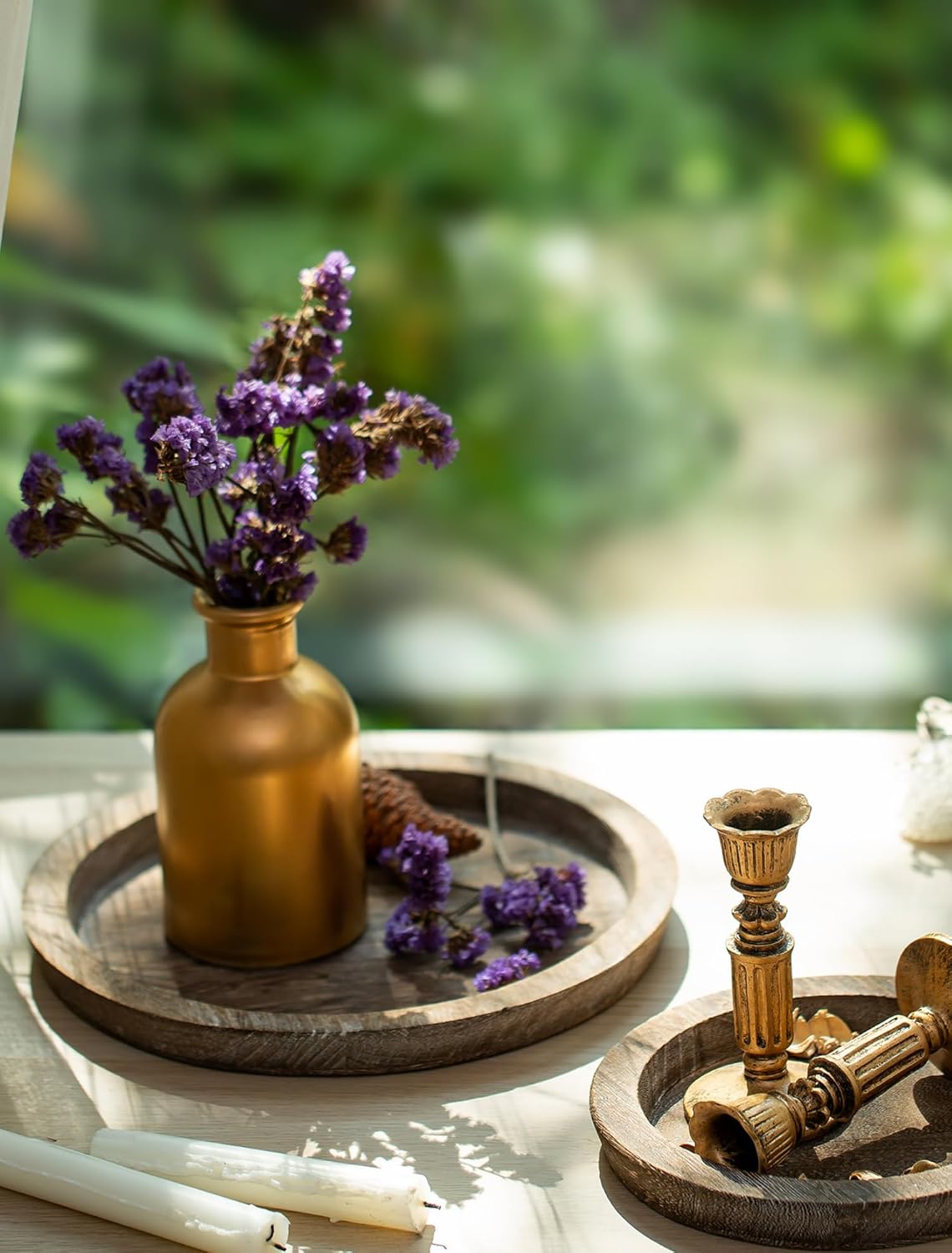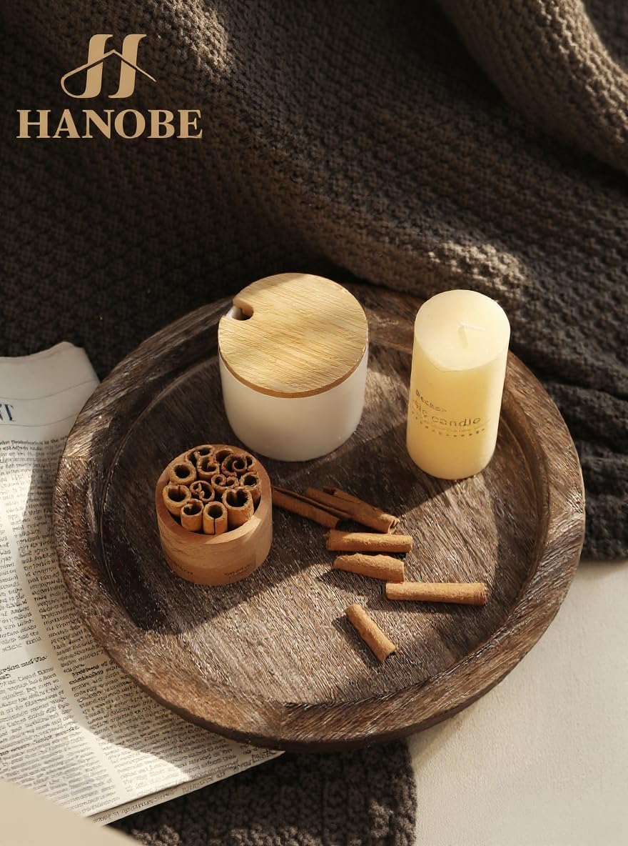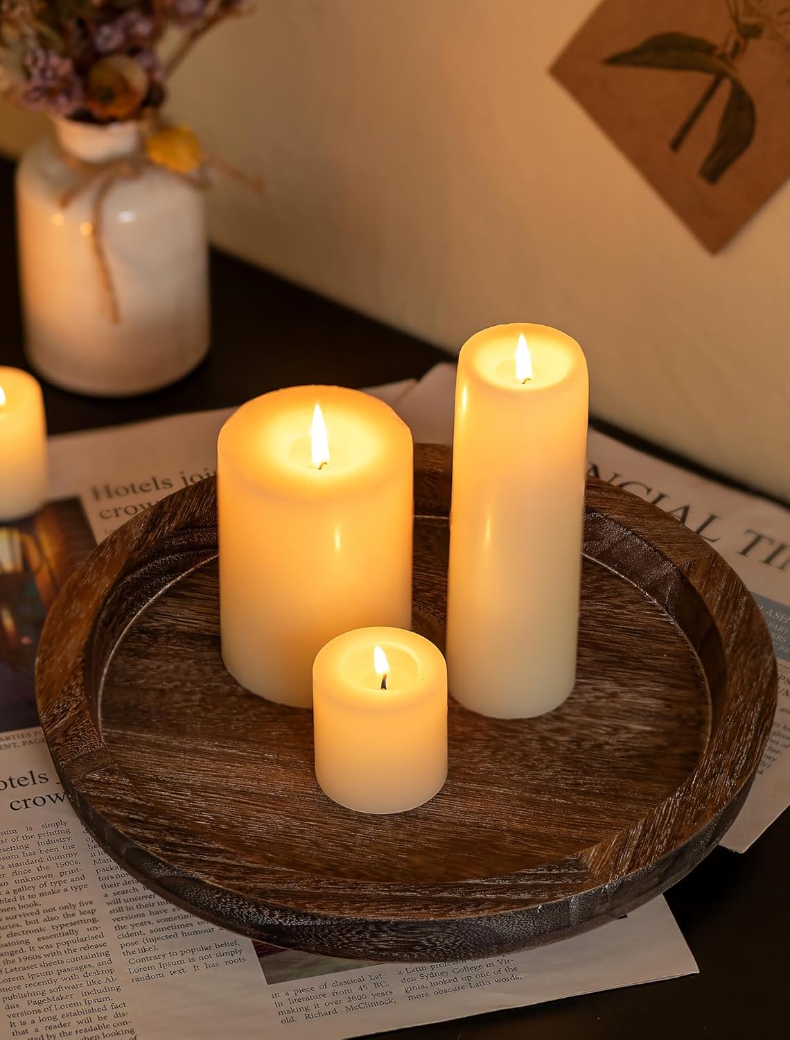 Hanobe Candle Plate Holder Tray: Round Wood Decorative Candle Plate - Rustic Farmhouse CoffeeTable Decor - Tealight Pillar Trays for Home Decor (Distressed)