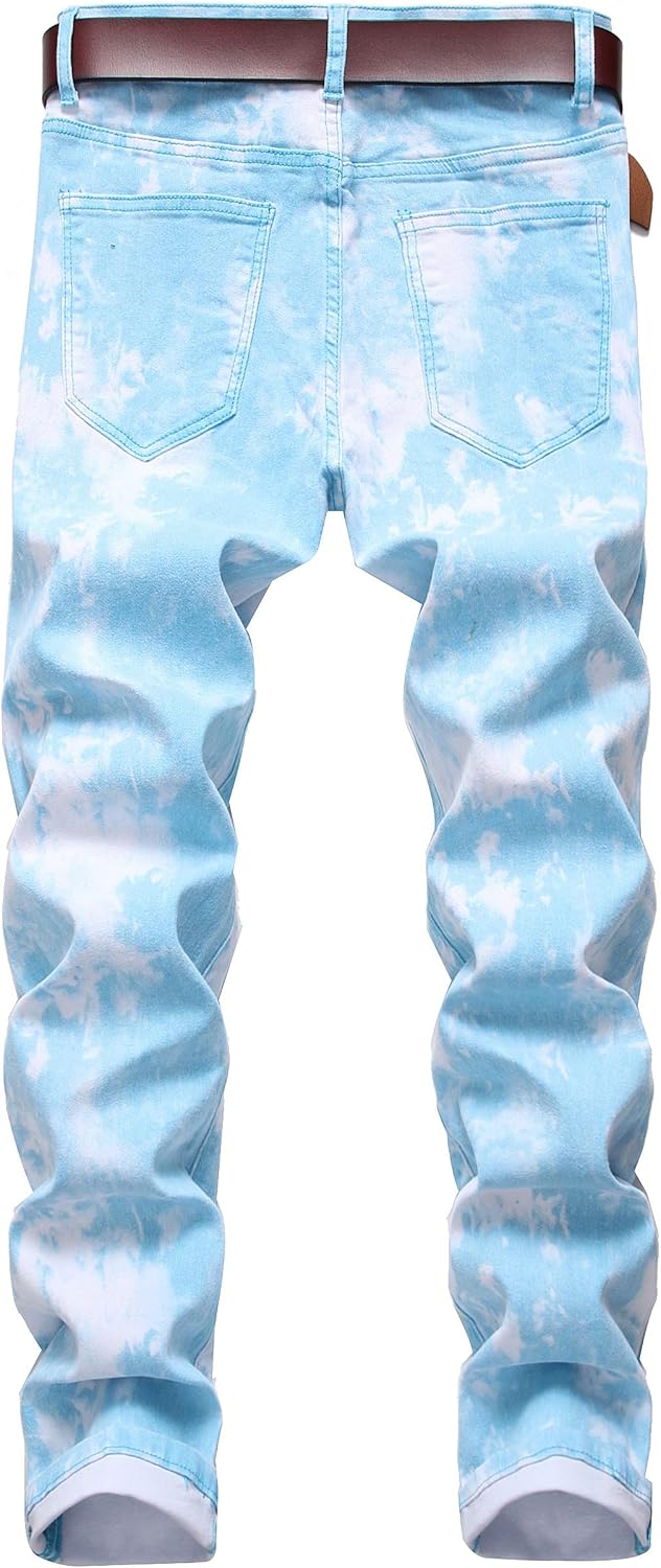 COOSVEN Mens Printed Jeans - Premium Jeans for Men Slim Fit - Skinny Stretch Denim Printed Pants for Men