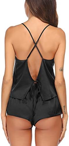 SOFT STYLE: Ekouaer soft women's pajamas lingerie sets with shorter booty shorts and soft satin fabric is everyday wardrobe essentials. These silk cami nightwear sets are not only good for nightwear at home but also used as a base for outerwear DESIGN&OCCASION: The soft lingerie set featuring adjustable cross shoulder straps. Fine condole belt, leak the back of half, elastic waistbandsatin slit hot shorts, the cute and soft 2-piece cami sleep sets for women make your family wander more comfortable and elegant HIGH-QUALITY MATERIAL: The female loungewear is luxurious silk satin, 95%polyester 5%spandex. More advanced and expensive Silk Satin than normal: Super high elasticity, more comfortable. Cool lightweight, smoother, and more tactile. Please note that dark colors may fade, please wash before wearing, machine washable IDEAL GIFTS & OCCASIONS: The wife pajamas outfit set is the perfect gift for women, Valentine's Day, Christmas Day, Bridal Party, Honeymoon, Anniversaries. The satin camisole lingerie PJs shorts set is perfect for daily wear or for fun couple nights Ekoauer backless silk pajamas set are luxuriously stylish & soft to the touch! If it is wrinkled, you can steam it before you wear it. Welcome to contact us if it has any problems, we will try our best to make you satisfied
