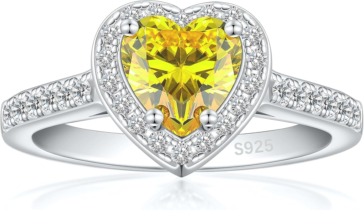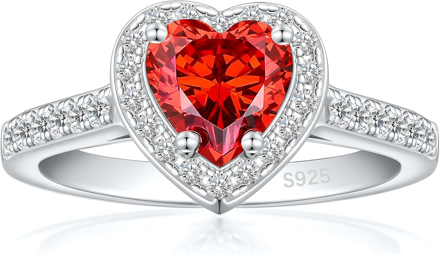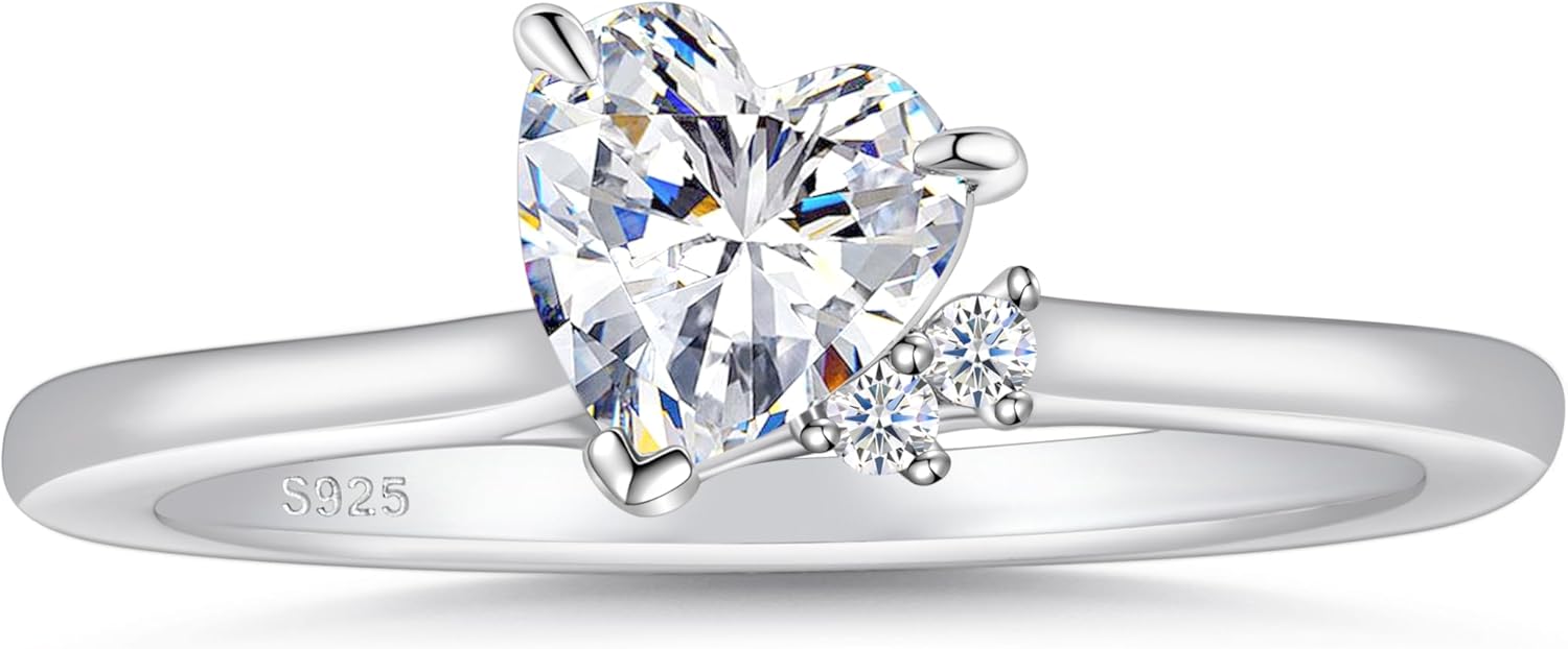 Cijisx 925 Sterling Silver Engagement Ring for Women Heart Gemstone Birthstone Promise Ring for Her Colored Cubic Zirconia Ring Size 4-10.5
