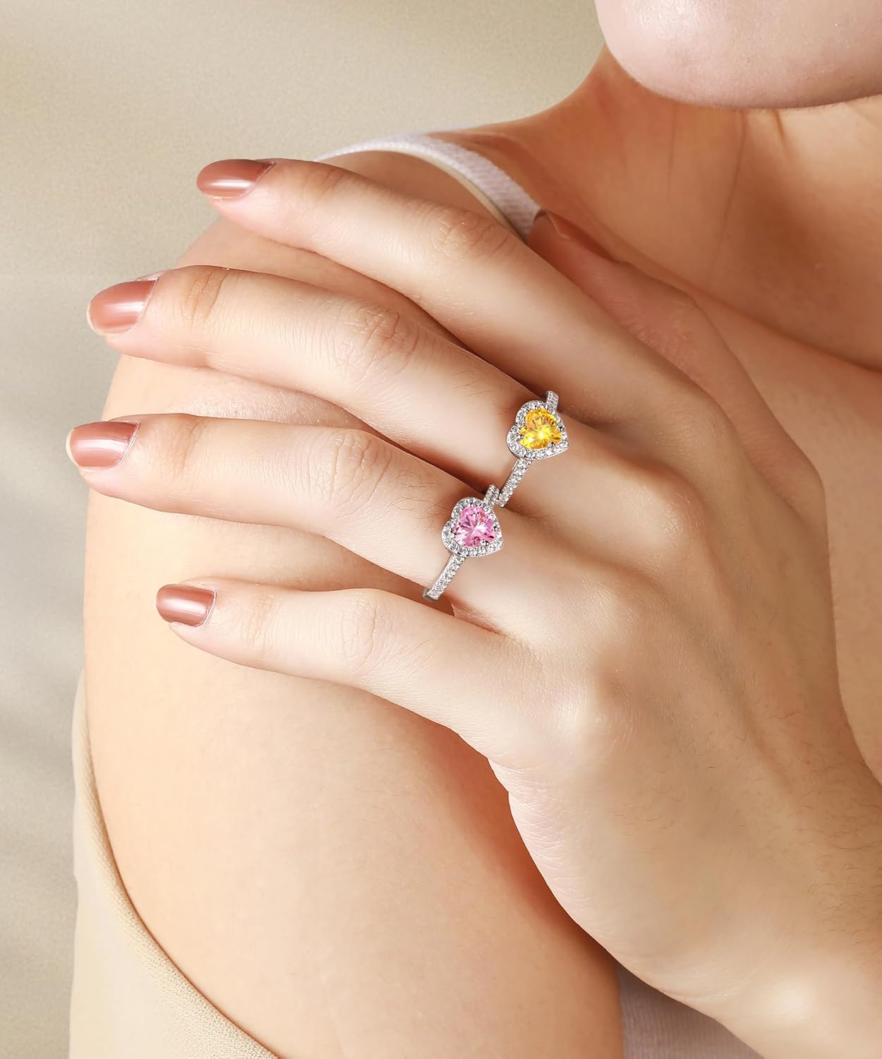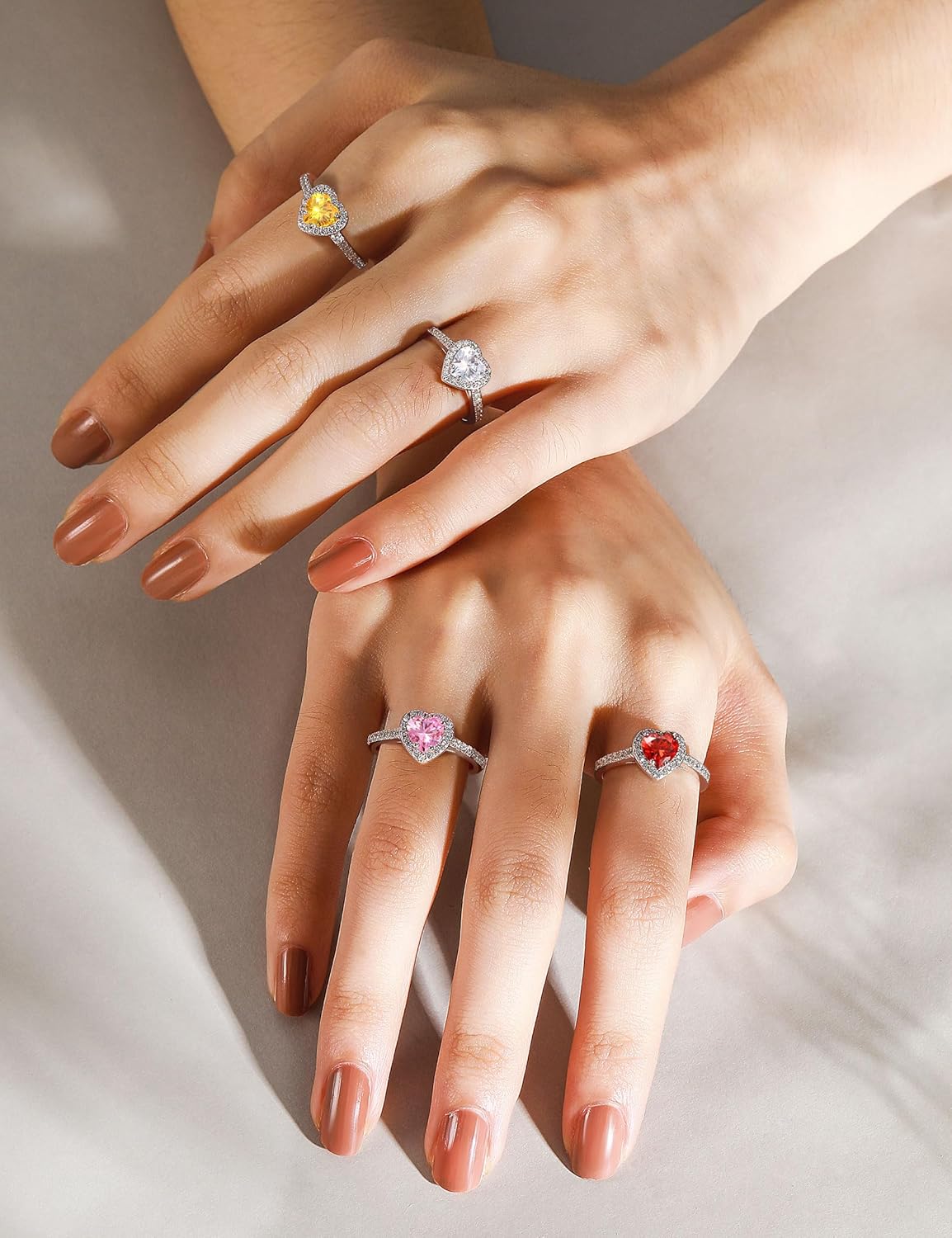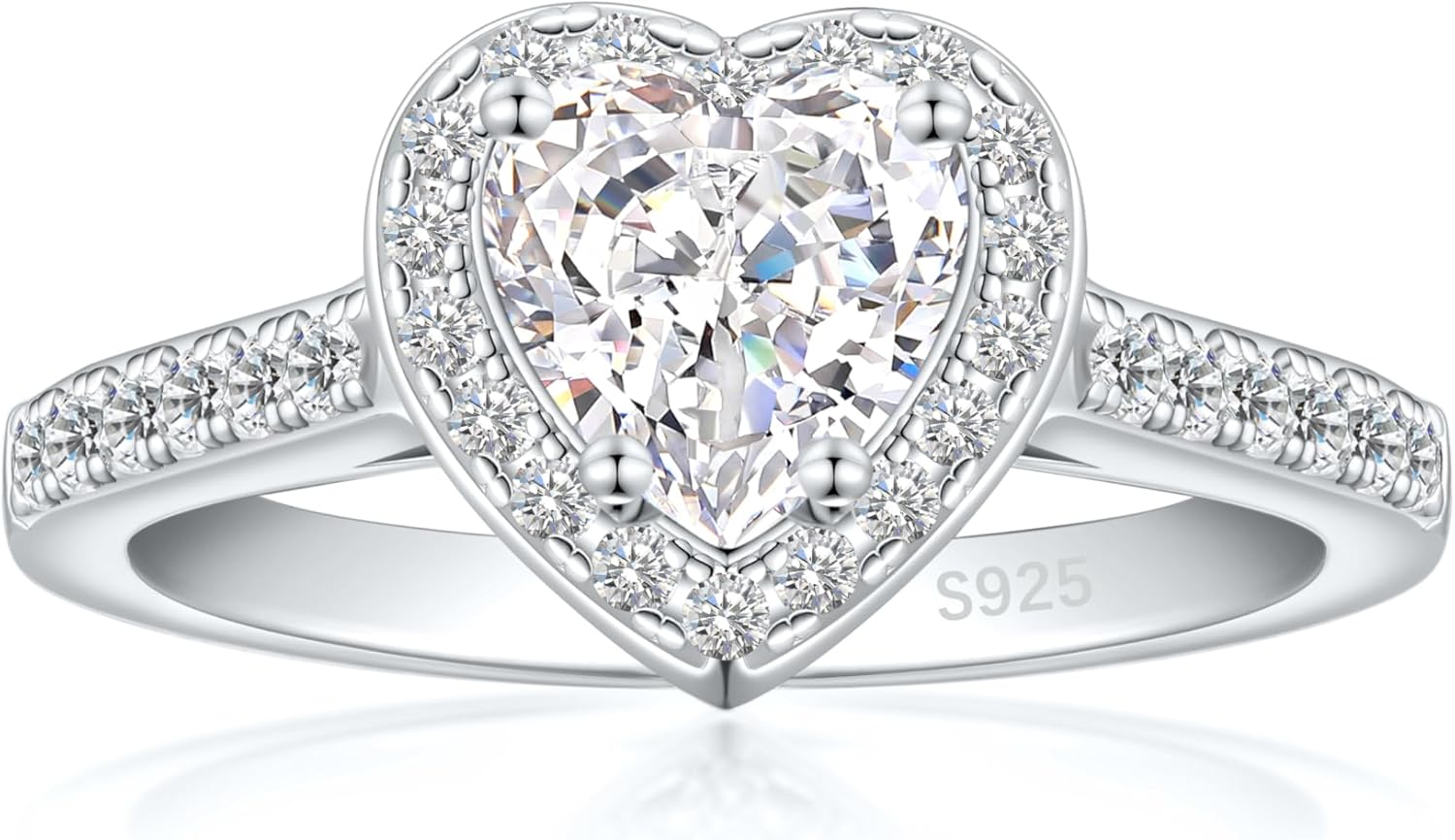 Cijisx 925 Sterling Silver Engagement Ring for Women Heart Gemstone Birthstone Promise Ring for Her Colored Cubic Zirconia Ring Size 4-10.5
