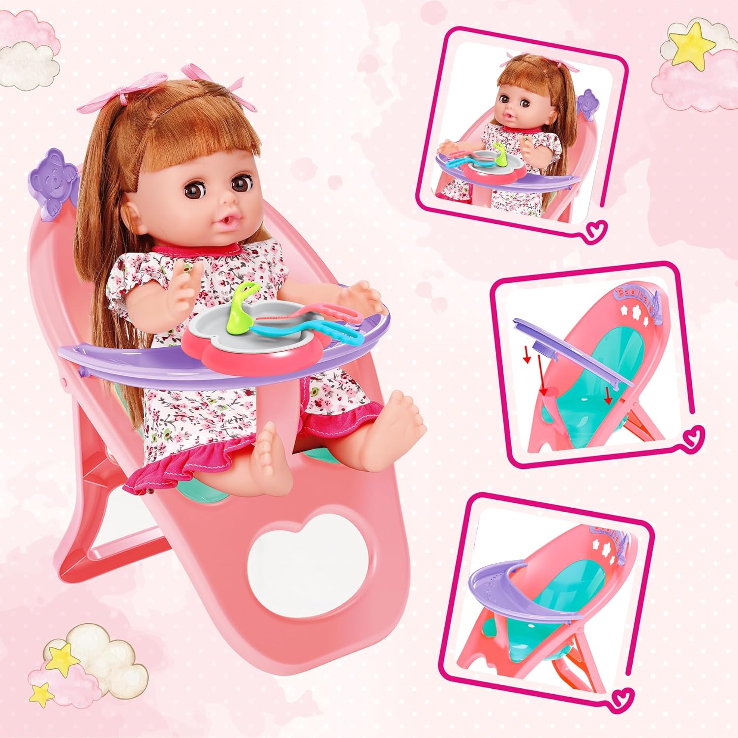 Baby Doll Toys Set, 14" Doll Toys, 25Pcs Dolls Care Toy Playset, Toddlers Toy Dolls Set Incl Cradle Crib, High Chair, Milk Bottle, Pacifier, Diaper, Baby Gift for Age 3 4 5 6+ Years Old Girls Boys