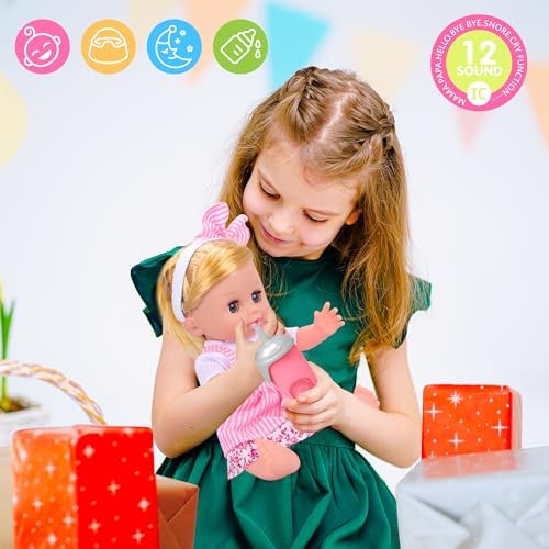 Baby Care Doll Toys Set, 36PCS Dolls Playset, Hair Salon Pretend Play Toddler Doll Toys Incl 14'' Baby Dolls Toy, Backpack, Hair Dryer, Curler, Xmas Gifts for Age 3 4 5 6+ Years Old Girls Kids