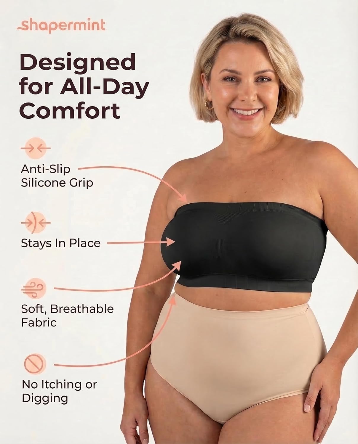 SHAPERMINT Strapless Bras for Women - Bandeau Bra, Small to Plus Size Bras for Women, Strapless Top