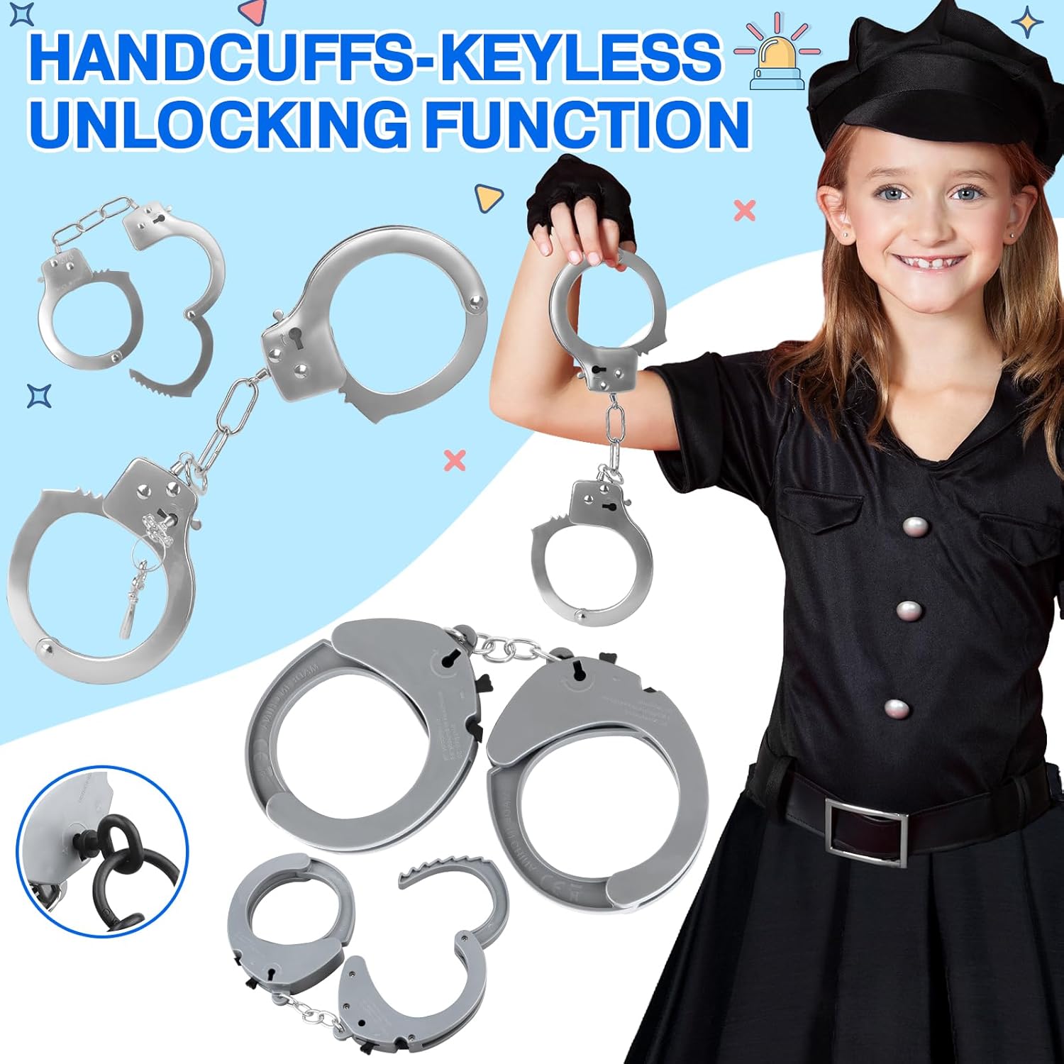 IVENRXIU Police Toys, Police Pretend Play Toys for Kids Boys and Girls, Role Play Set with Police Accessories, Handcuffs, Warning Light, Police Badge, Birthday Halloween Christmas Gifts