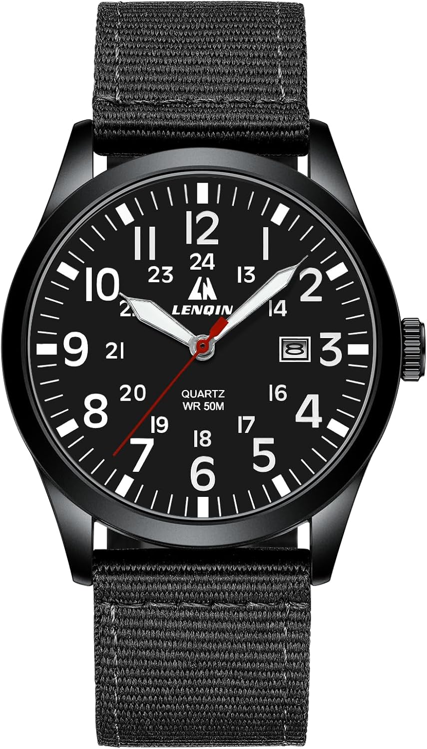 LN LENQIN Mens Watches Unisex Military Sport Nylon Strap Stylish Luminous Fashion Analog Quartz Watch for Men Waterproof Army Tactical Casual Wristwatch