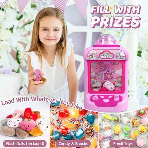 Marlrin Claw Machine for Kids, Mini Vending Machine Girls Unicorn Toys, Candy Grabber Prize Dispenser with Sound & 20 Mini Plush Toys, Electronic Arcade Game Indoor Toy for Home Party Birthday Gifts
