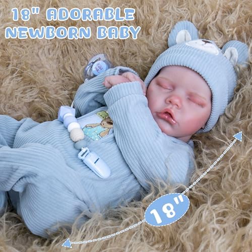 Milidool Realistic Reborn Baby Boy Dolls - Lifelike Newborn Baby Dolls That Looks Real,18 Inch Soft Handmade Real Looking Baby Doll, Real Life Baby Dolls with Gift Box for Kids Age 3+