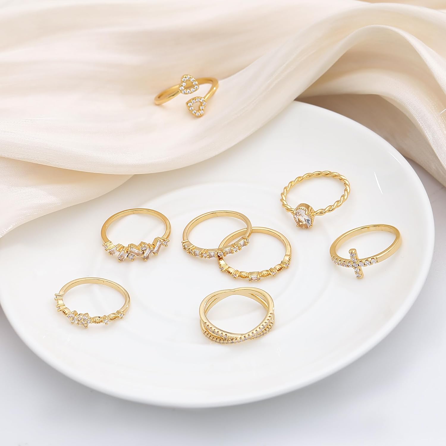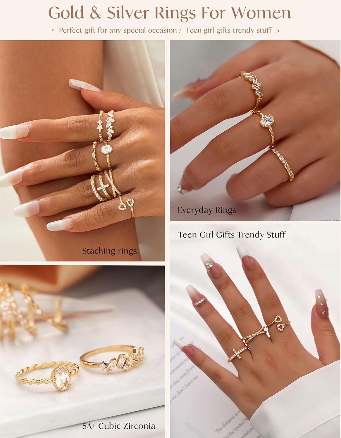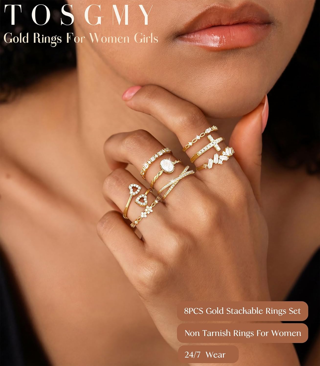 TOSGMY Gold Silver Rings For Women Non Tarnish Gold Plated Stackable Rings Wedding Engagement Bands Dainty 14K Gold Ring Simple Trendy Cubic Zirconia Thumb Stacking Ring Pack Size 4-11