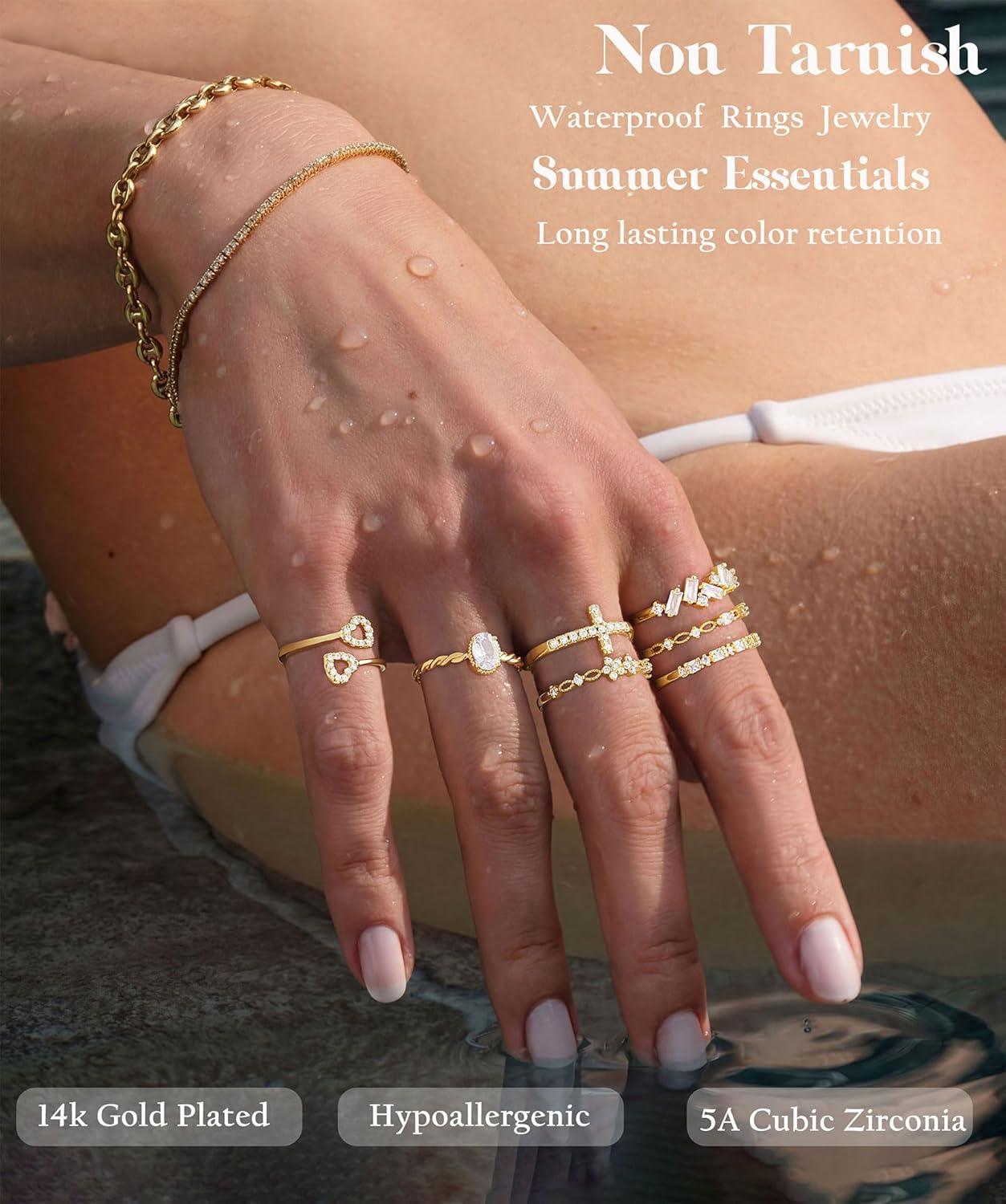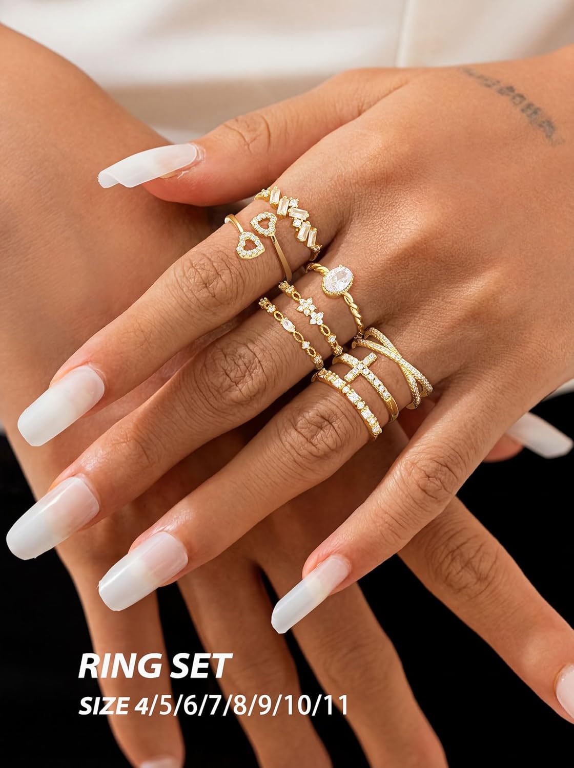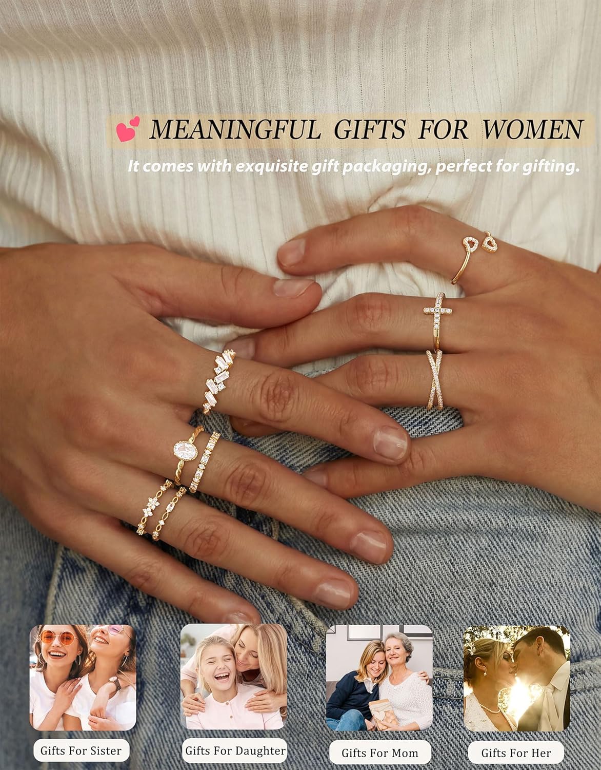 TOSGMY Gold Silver Rings For Women Non Tarnish Gold Plated Stackable Rings Wedding Engagement Bands Dainty 14K Gold Ring Simple Trendy Cubic Zirconia Thumb Stacking Ring Pack Size 4-11