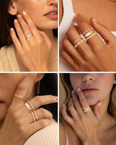 Stackable Gold rings: An order consists of 4 or 5 different styles of stackable rings, simulated diamond rings, promise rings. Each set of gold rings contains a unique diamond element, very shiny, fashion cute design, these rings can be worn alone or stacked, gold rings are the perfect match for engagement rings or wedding rings, making you more elegant and sophisticated. Diamond Ring Set: The dainty ring is made of high quality brass with cubic zirconia gemstones, 14k gold plated and highly polished to prevent oxidation and maintain a lasting shine while showing your nobility. This ring is lead -free nickel-free, hypoallergenic, and won't make your fingers green, red, or itchy. Can meet your daily wear. The ring is a minimalist modern design, trendy and yet classic, suitable for most women and teenagers. 14k gold plated ring size: 5 sizes to choose from (US size #7, #8, #9, #10, #11). The stylish gold ring can be stacked or used on its own, perfectly matching an engagement ring or wedding ring, or just as a simple ring, stacked ring, thumb ring, ring, anniversary promise ring. Simple and modern. The perfect gift: There are many styles in the ring set, each of which is very popular with women. The ring symbolizes true love and eternity. For someone you love or for yourself. Gold rings are one of the most popular pieces of jewelry for women. On Valentine's Day, Christmas, Thanksgiving, Mother's Day, Halloween, birthdays, this is the perfect gift for your lover, sister, mother, friend, or significant other. After-Sale Warranty: your satisfaction is our pursuit, in the purchase process if you have any questions, please feel free to contact us, we will provide you with the best solution within 24 hours.