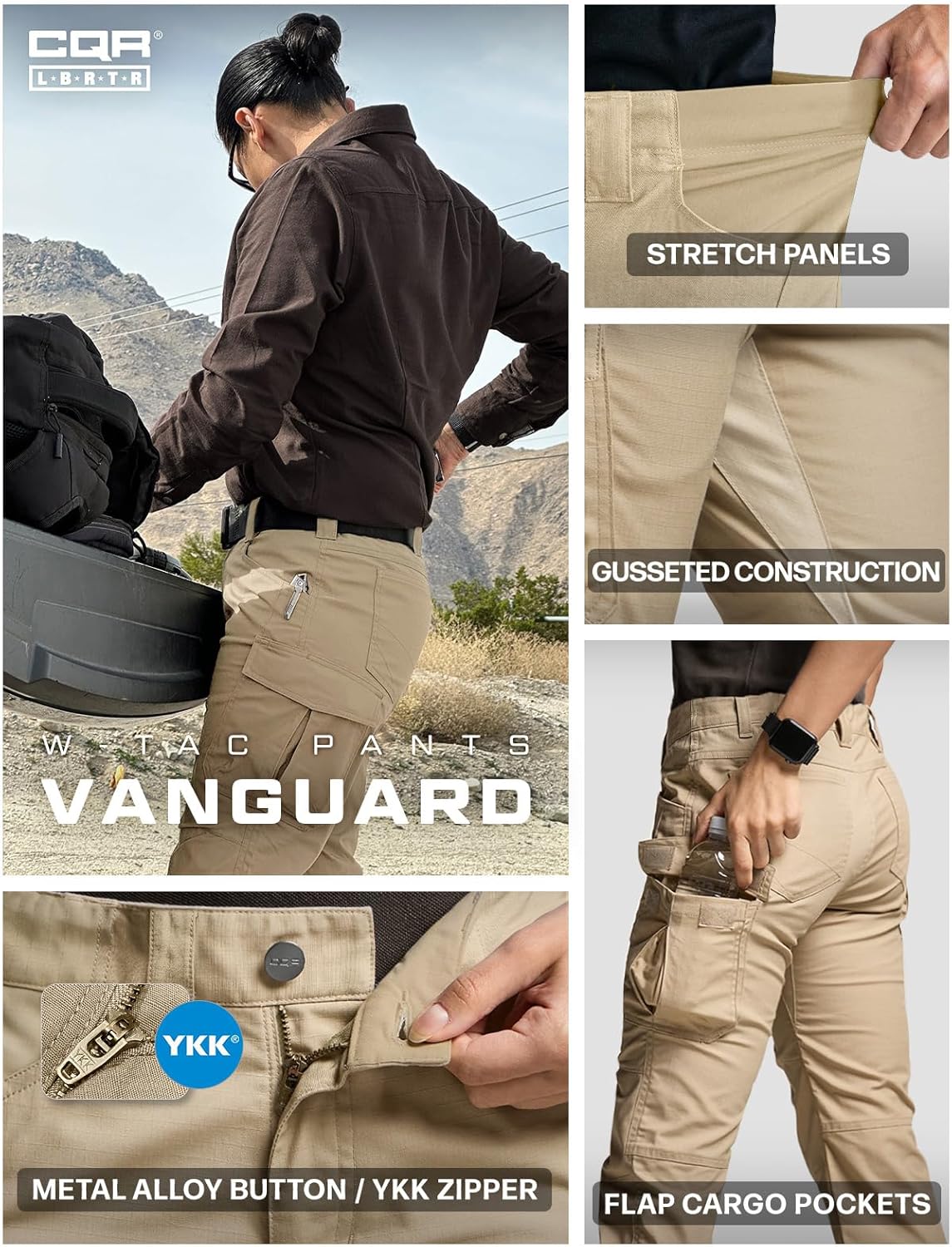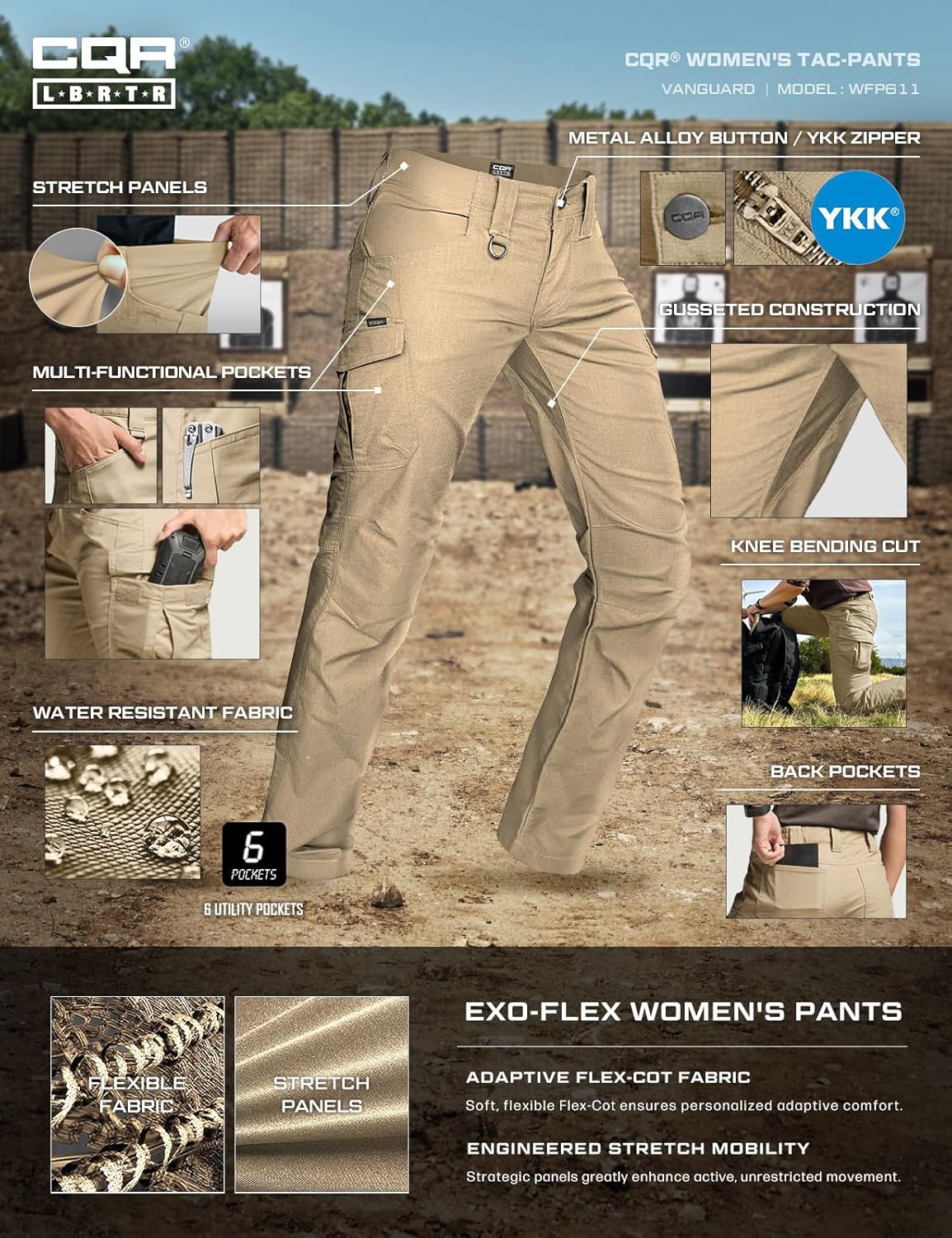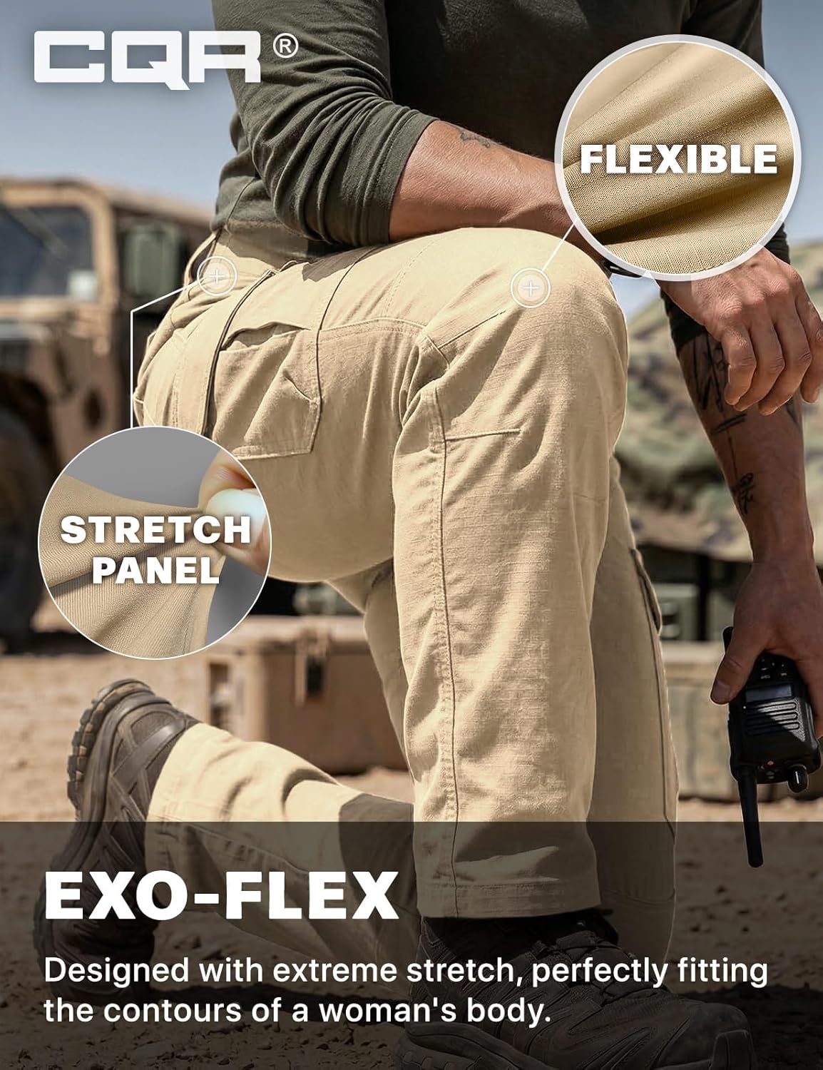 CQR Women's Flex Stretch Tactical Pants, Water Resistant Ripstop Cargo Work Pants with Pockets for Outdoor & Hiking