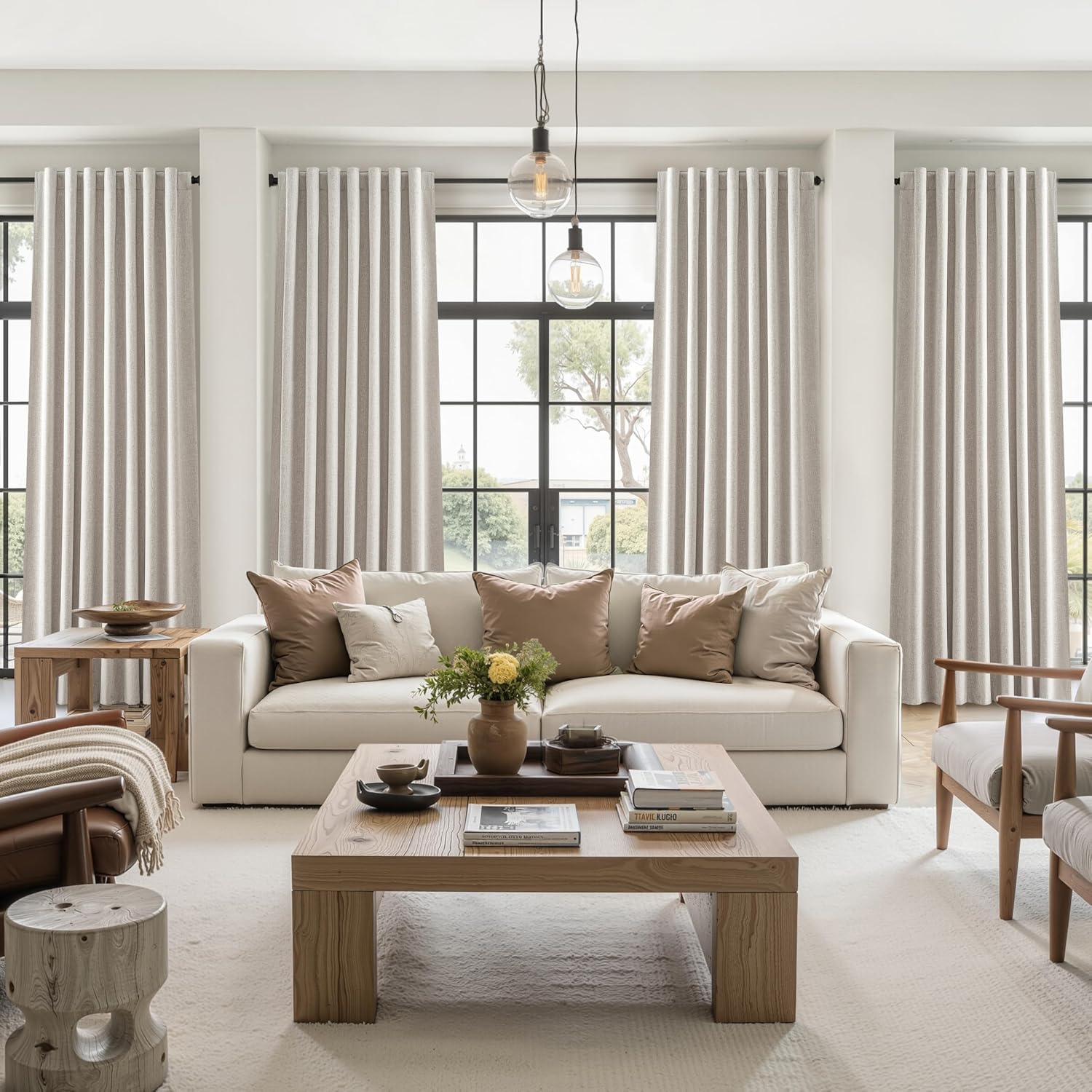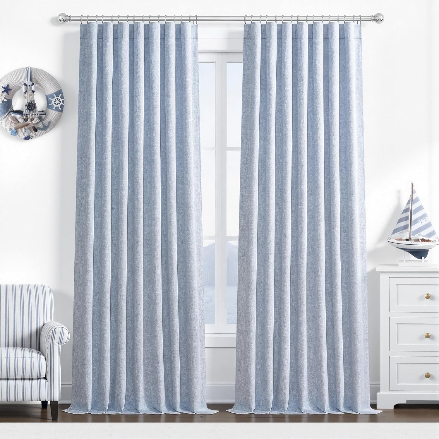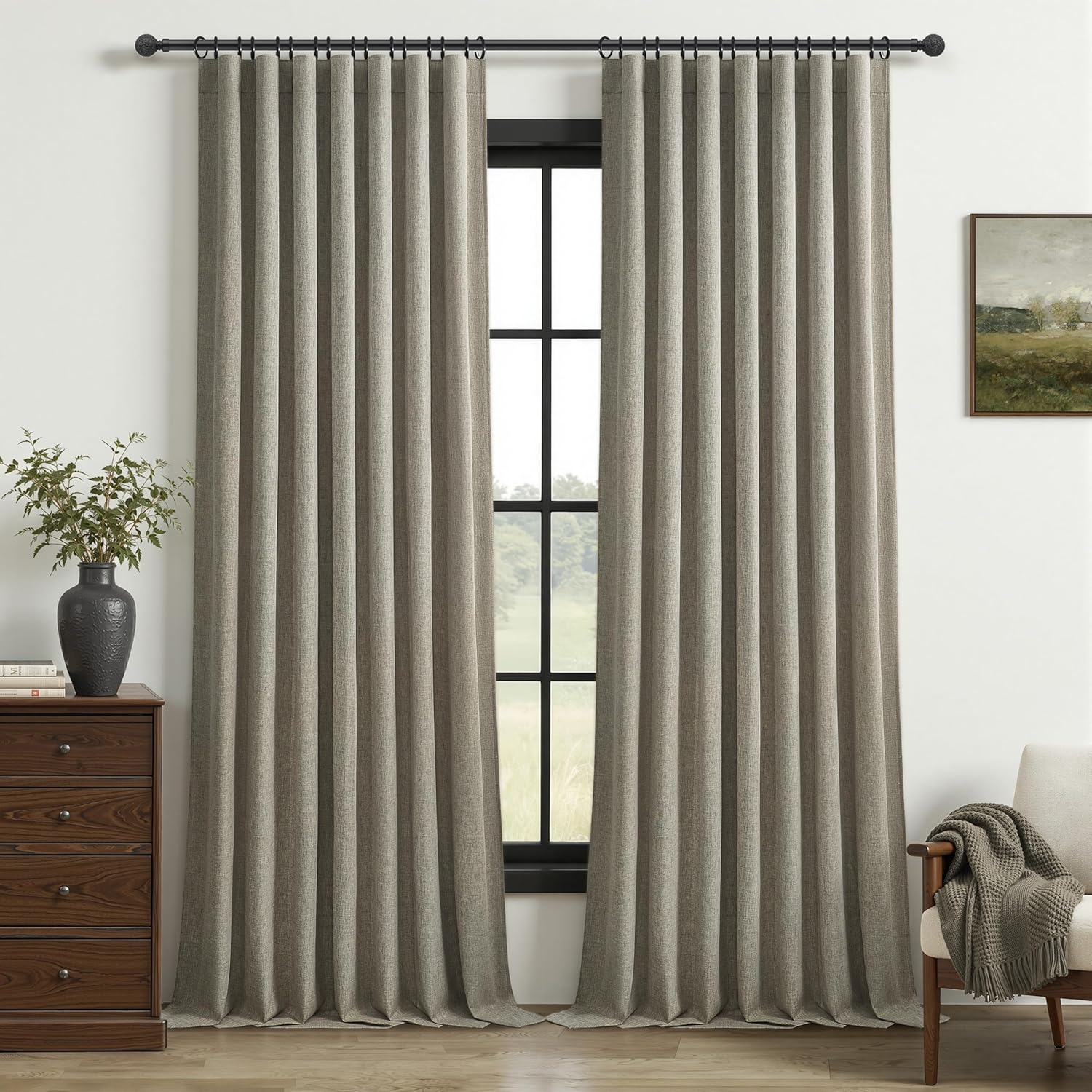 100% Blackout Curtains 84 Inch Length 2 Panels Set Farmhouse Style for Bedroom Windows\/Living Room Thermal Insulated Neutral Boho Drapes Linen Blend Natural Ivory 7ft Long Hook Belt Pleated\/Back Tab