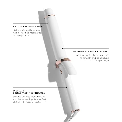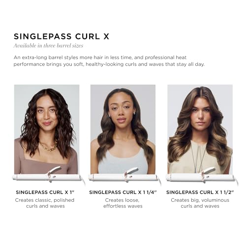 T3 SinglePass Curl X Extra-Long Barrel 1", 1.25", 1.5" Curling Iron with 9 Heat Settings and Ceramic Barrel for Fast Styling and Lasting Results on All Hair Types
