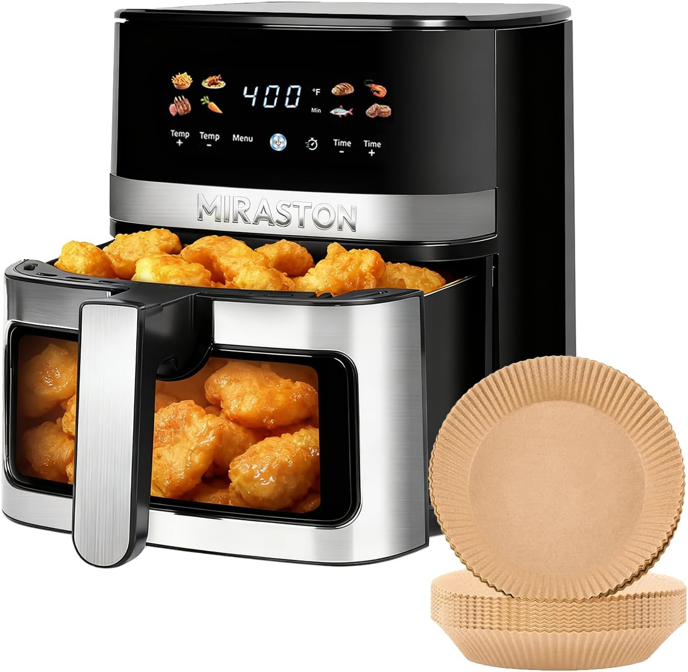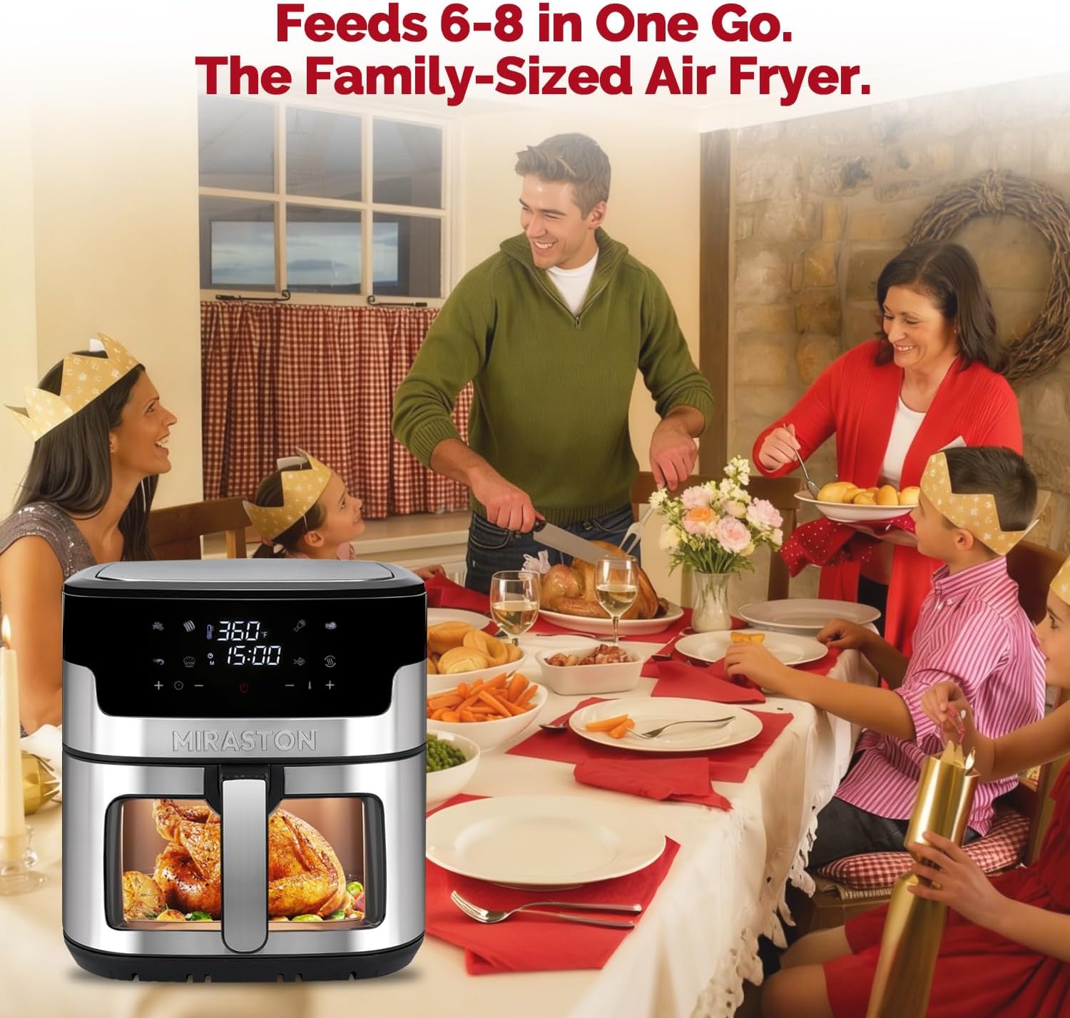 MIRASTON Air Fryer, 8.5QT Family Size Digital Air Fryers, BPA-Free, Smart Touchscreen with 8-Preset, Air Frying, Reheat Leftovers, Party Food, Fast Cooking, Dishwasher-Safe, Stainless Steel
