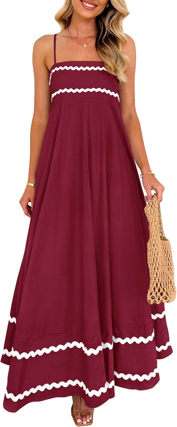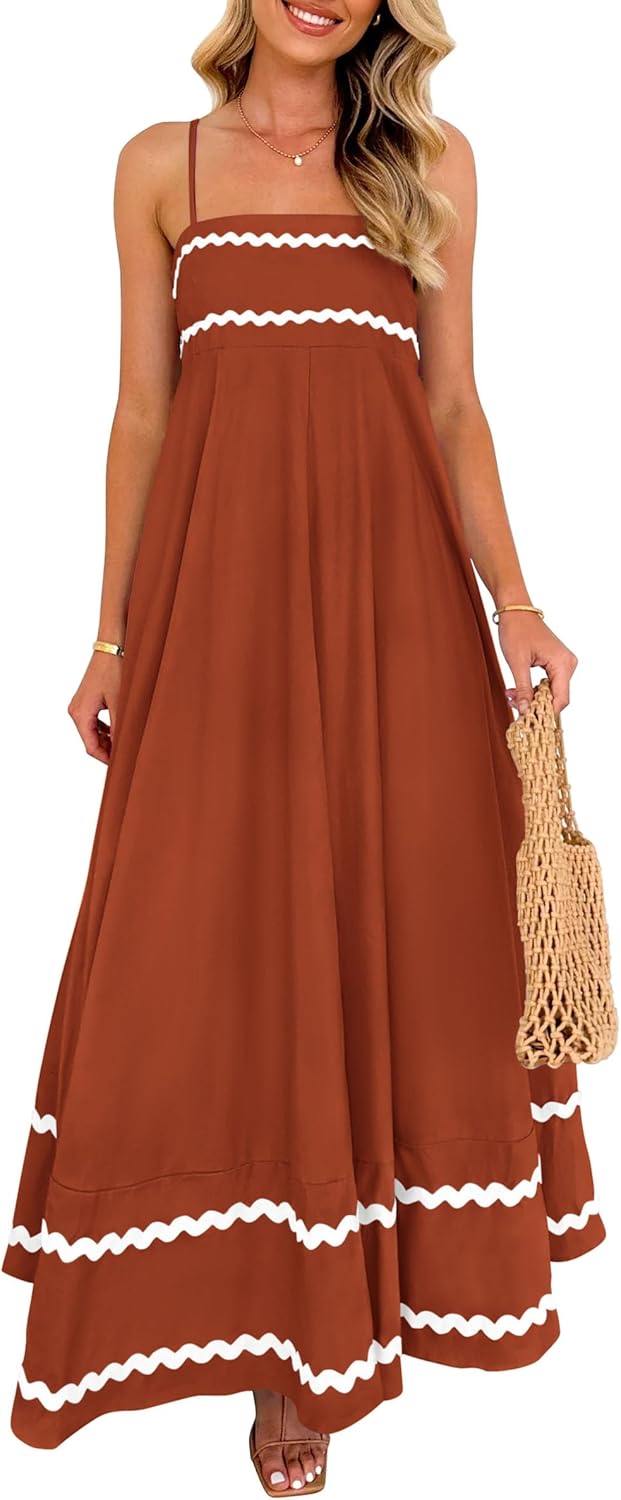 PRETTYGARDEN Women's 2026 Summer Flowy Maxi Dress Casual Sleeveless Spaghetti Strap Ruffle Beach Long Dresses