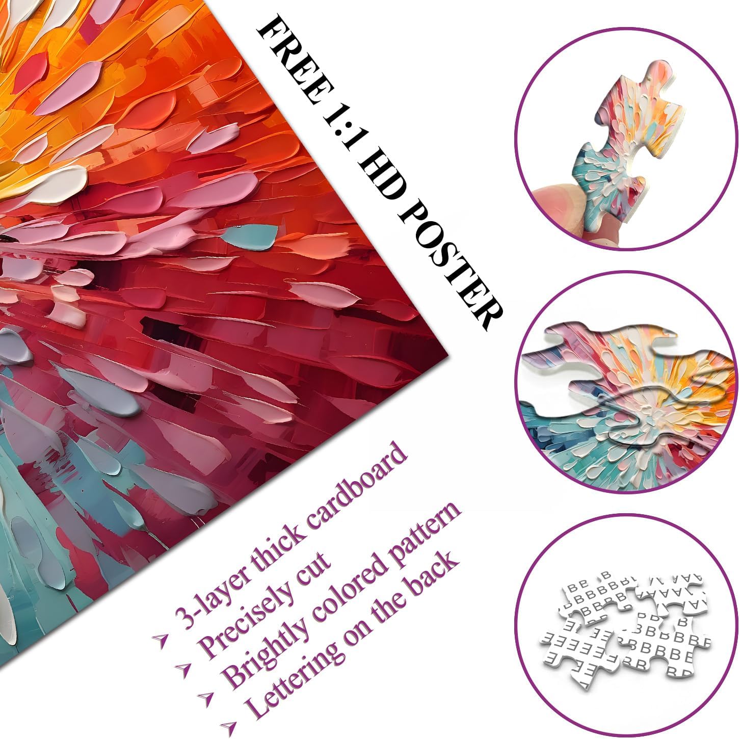 Excellent Workmanship:The art changing color puzzle 1000 pieces is made of three-layer cardboard and printed with no-glare, non-toxic inks. Each piece of .Hard puzzles for adults 1000 pieces and up has been precisely cut to ensure a snug fit